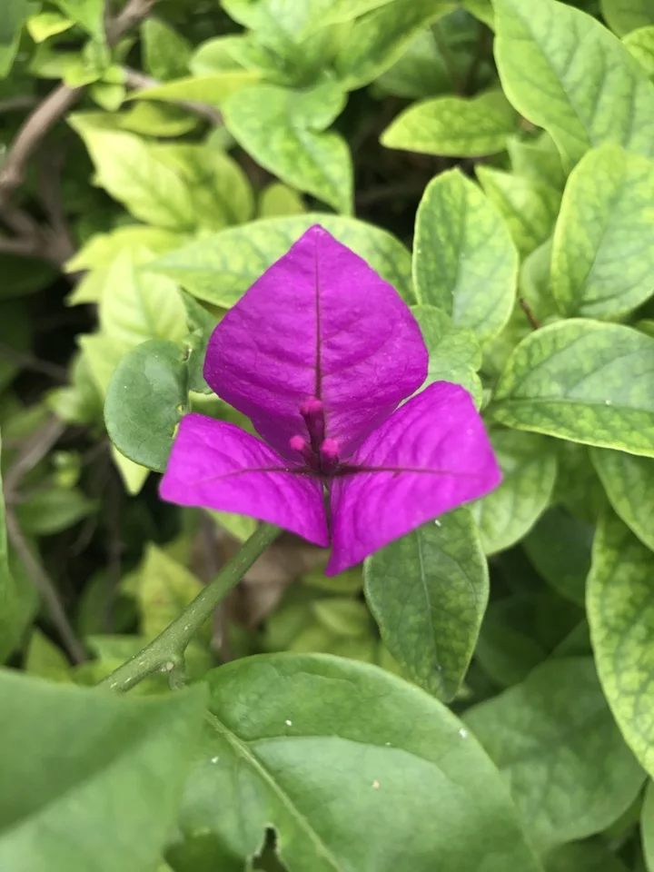 其实叶子花有很多的颜色,鲜红、橙黄、紫红、乳白等等,其间紫红色的最为寻常,这个季节看到的叶子花几乎都是这个颜色。花期很长,跟月季似的,开了一茬又一茬几乎全年可见。