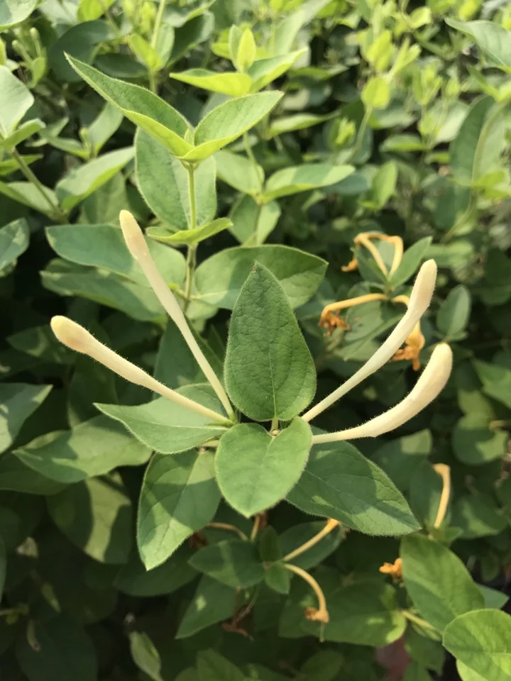 金银花 ,正名为忍冬(学名:Lonicera japonica Thunb. )“金银花”一名出自《本草纲目》金银花,三月开花,五出,微香,蒂带红色,花初开则色白,经一、二日则色黄,故名金银花。又因为一蒂二花,两条花蕊探在外,成双成对,形影不离,状如雄雌相伴,又似鸳鸯对舞,故有鸳鸯藤之称。