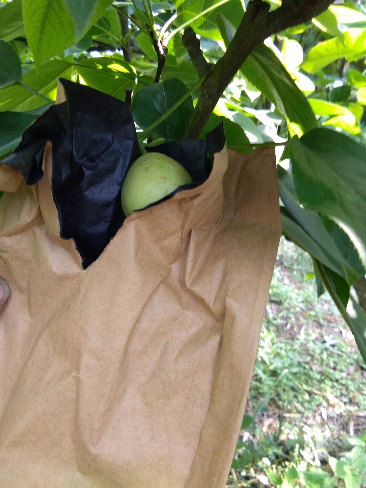 今天我去果园采摘枇杷,看到果园的梨树上挂满了纸袋,走到面前打开一看,里面黑黑的一层纸,装着一个小小的梨,为什么要套上一个袋,没阳光能长能好吃吗?