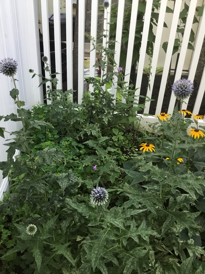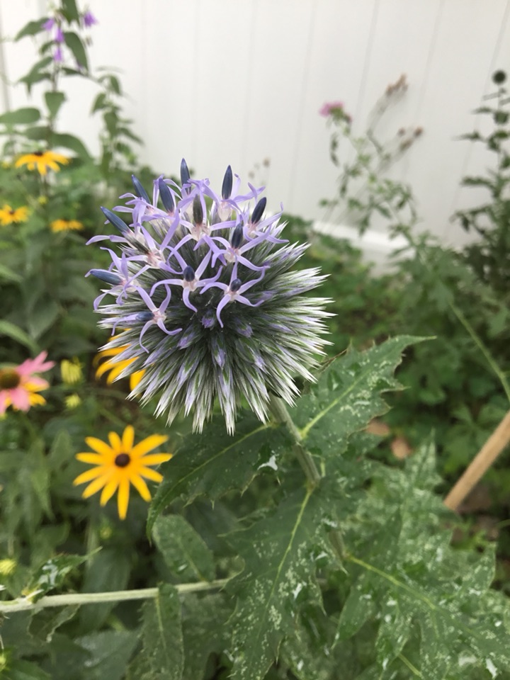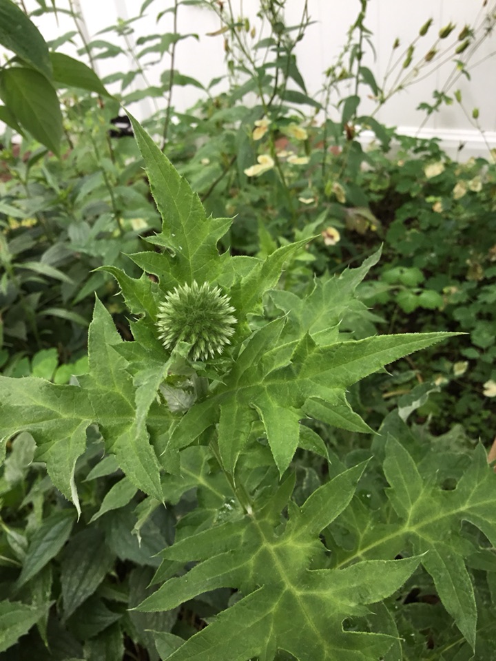 从春天蓝刺头发芽到盛夏蓝刺头开花,都没有怎么打理。没有特意给它浇水,没有上肥,没有剪枝等等。