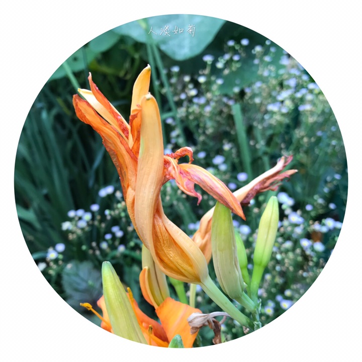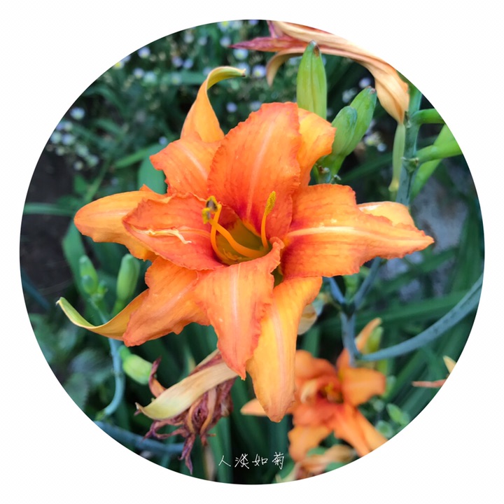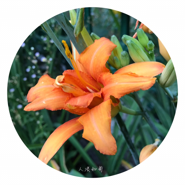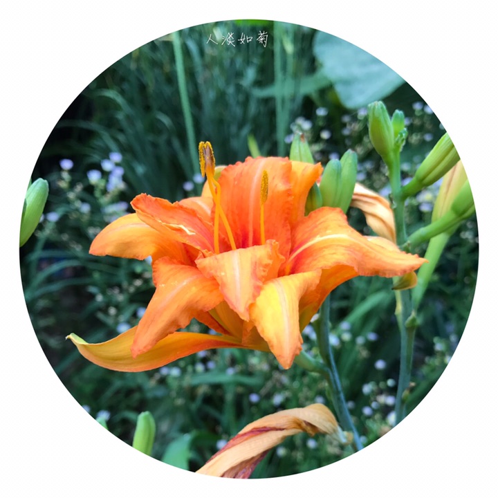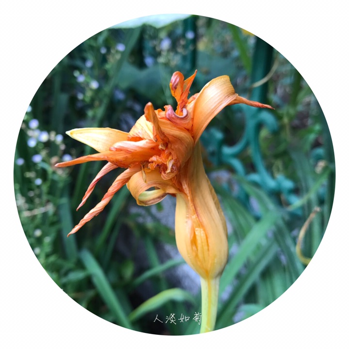 重瓣大花萱草是大花萱草的一个变种。花桔黄色,花被裂片多数,雌雄蕊发育不全。