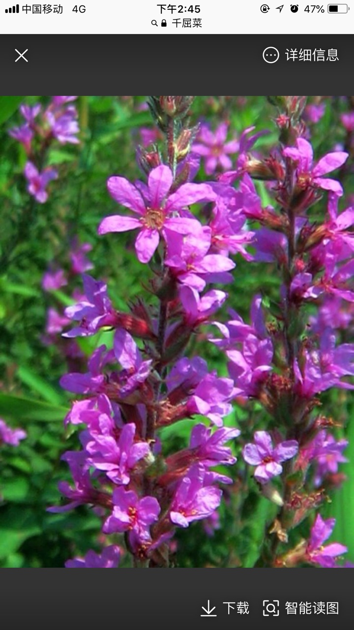 千屈菜,拉丁学名:Lythrum salicaria L.千屈菜科、千屈菜属多年生草本,根茎横卧于地下,粗壮;茎直立,多分枝,全株青绿色,略被粗毛或密被绒毛,枝通常具4棱。叶对生或三叶轮生,披针形或阔披针形,顶端钝形或短尖,基部圆形或心形,有时略抱茎,全缘,无柄。花组成小聚伞花序,簇生,因花梗及总梗极短,因此花枝全形似一大型穗状花序;苞片阔披针形至三角状卵形,三角形;附属体针状,直立,红紫色或淡紫色,倒披针状长椭圆形,基部楔形,着生于萼筒上部,有短爪,稍皱缩;伸出萼筒之外;子房2室,花柱长短不一。蒴果扁圆形。[1]图片取自中国植物图库