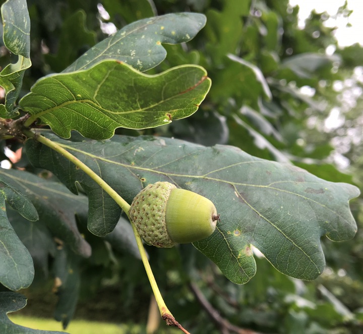 顺便说一下,叶子也有特点,像个大蒲扇,这种植物叫栎。