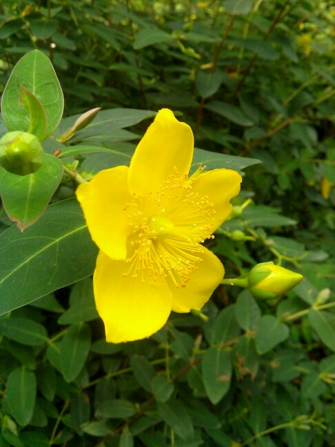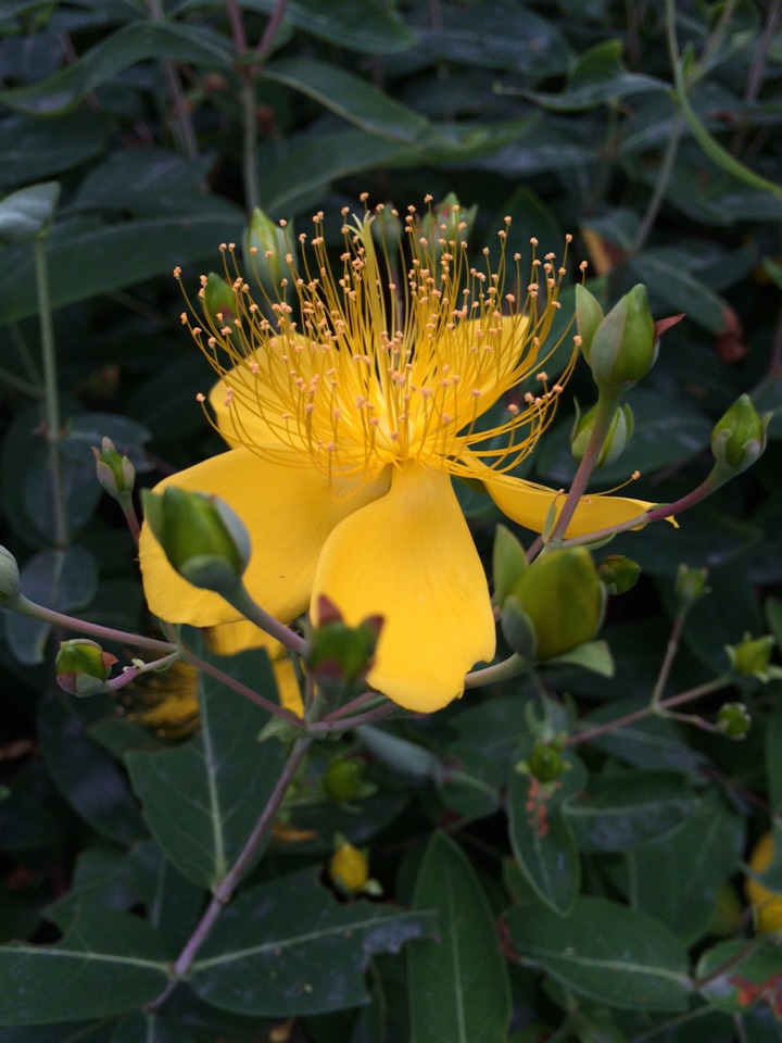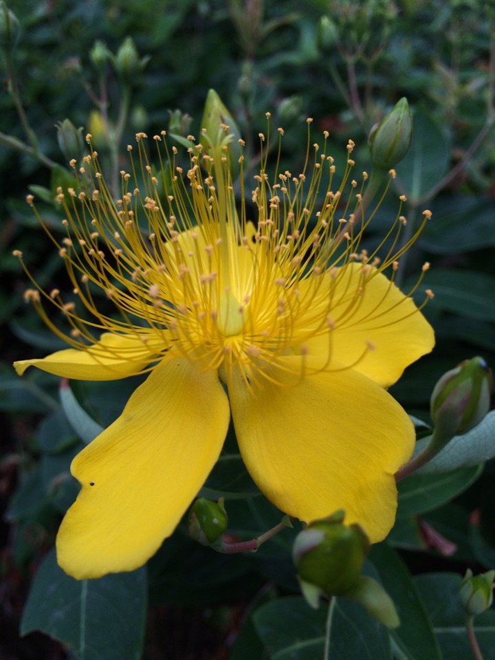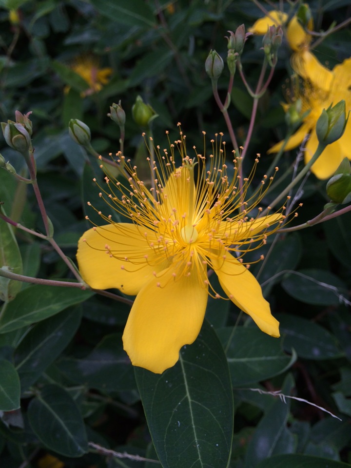 金丝桃为藤黄科金丝桃属植物,端午节前后就开始绽放。金黄色的雄蕊细长灿如金丝绚丽可爱,是大家喜欢栽培的花卉之一。
