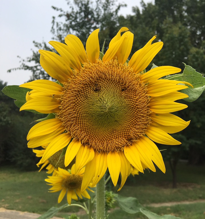 好久没见向日葵了,今天在北京植物园看到这么一棵,圆圆的脸盘,就是眼睛有些小,像田边的稻草人。