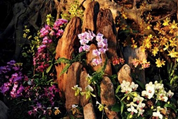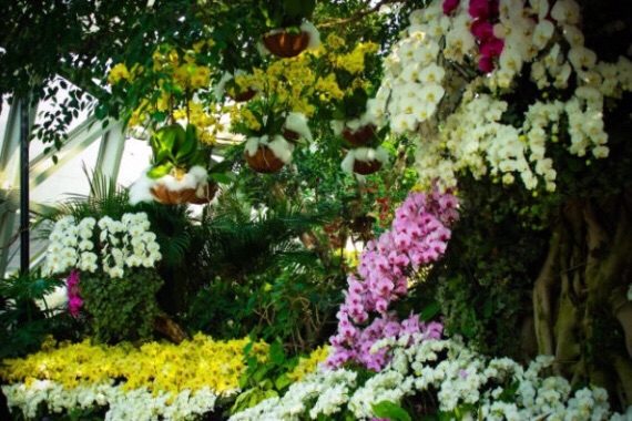 展出的都是热带的兰花,各种各样的颜色,从四月末一直开到五月份,特别鲜艳。
