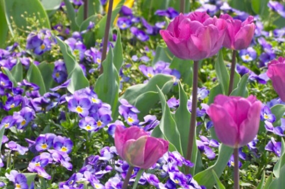 有时候郁金香会和三色堇一起种,花和花之间就用三色堇连接着,一下就观赏了两种花卉,算是一种特别的创意,植物园中还有很多这样的小细节哦。