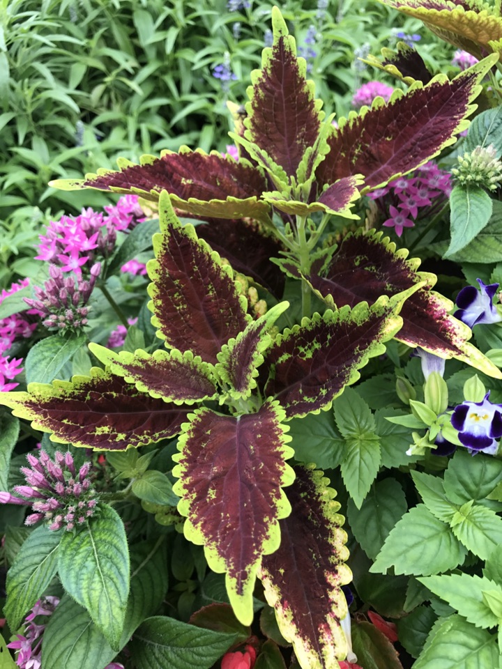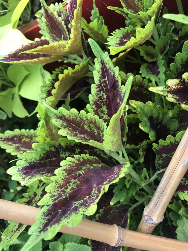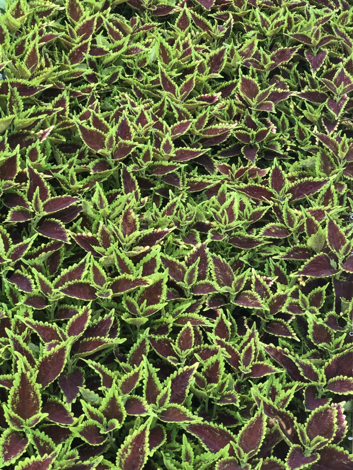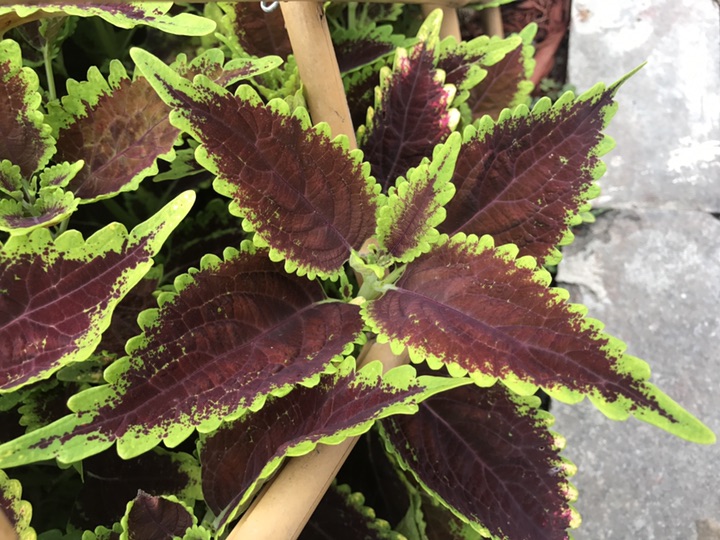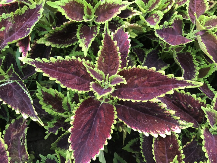 五彩苏(学名:Coleus scutellarioides (L.) Benth.)是唇形科,鞘蕊花属直立或上升草本植物。 叶膜质,其大小、形状及色泽变异很大,通常卵圆形,先端钝至短渐尖,基部宽楔形至圆形,边缘具圆齿状锯齿或圆齿,色泽多样,常见的有黄、暗红、紫色及绿色,可这种色彩搭配的五彩苏还是第一次见呢!