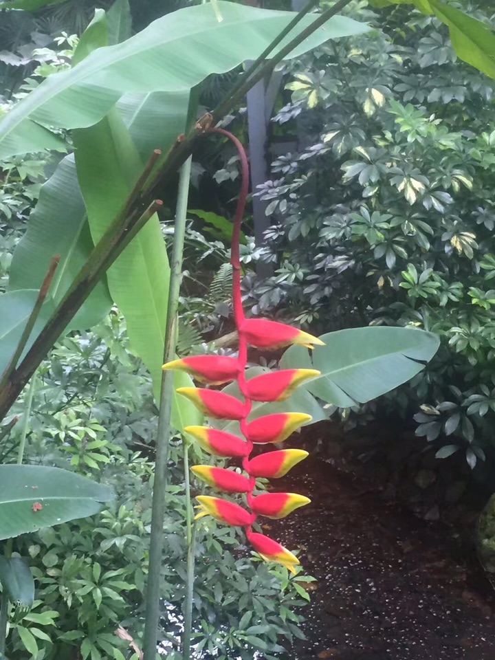 华南植物园里,各种蝎尾蕉斗艳。,我觉的它们更像是一只只鲜艳的小鸟儿,展翅欲飞。