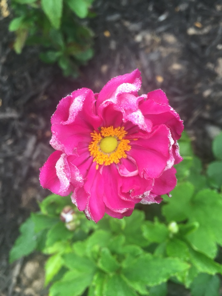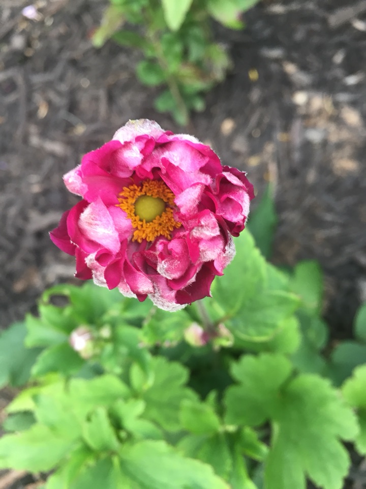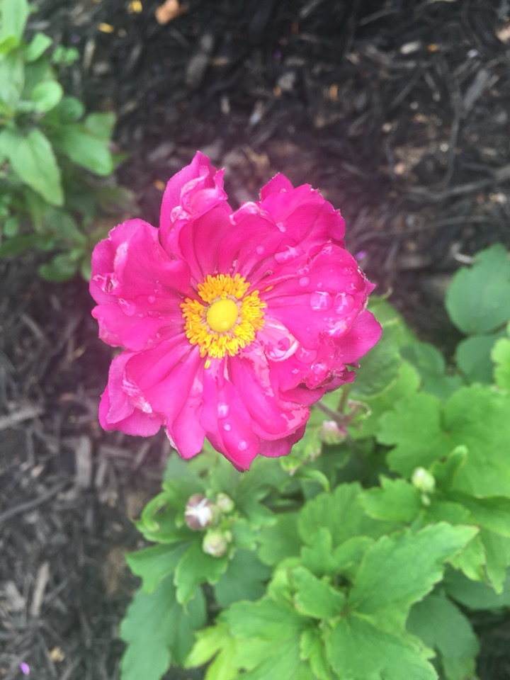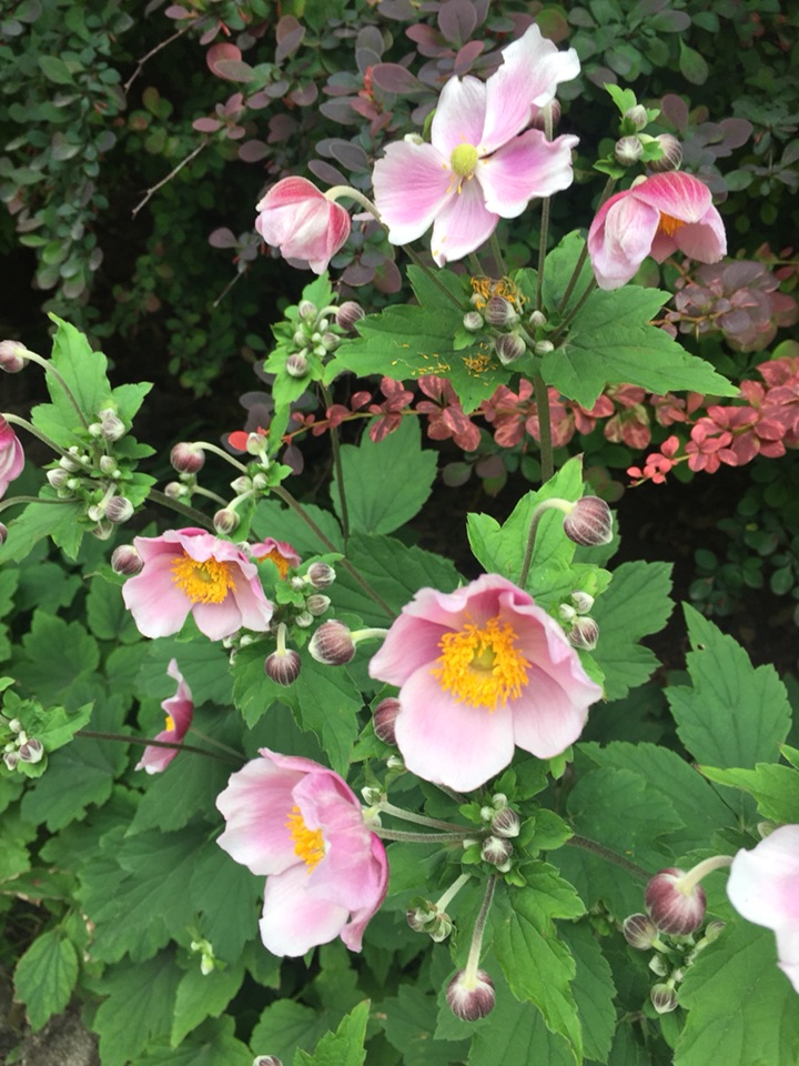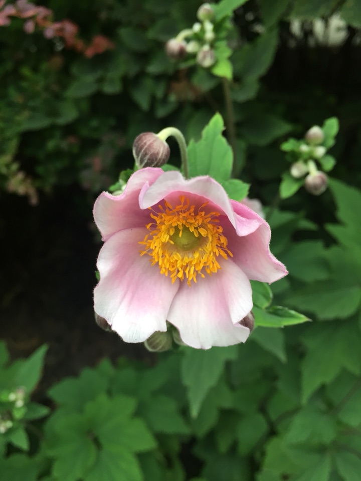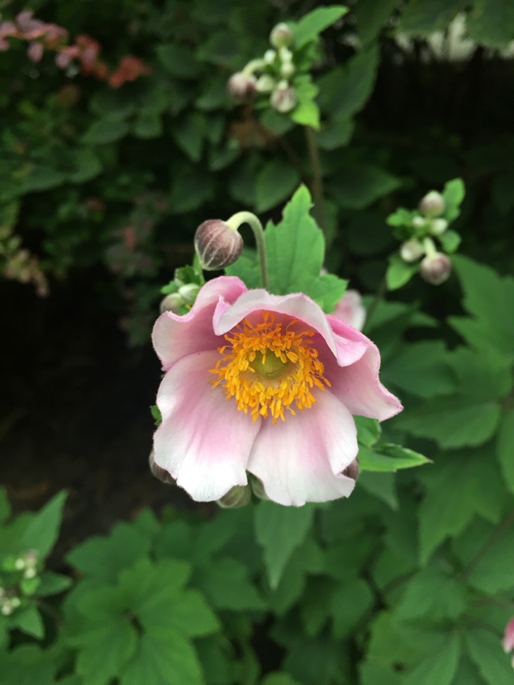 正好今夏我也种了一株这种花 (Japanese Anemone) 为的是她夏末秋初的花期 好让花园里秋季也有花开 这不,这两天这花开始开了,虽然只开了一朵😜