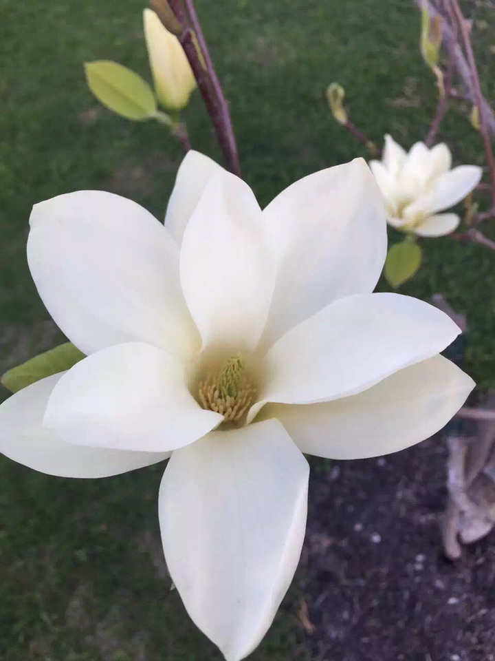 这棵玉兰是配合我🏠新房、种在前院的“门面花”;在我们那寒冷地带这种开花树不多,也很难在苗圃、花店踫上,所以很幸运能在那一年、那一刻买到这棵小树苗。由于很难看到,每年开花时,邻居们、邮递员、朋友们都会来赏赏花。如果踫巧我们不在家,邻居还会赏花后拍照发给我们、汇报花开的情况😜