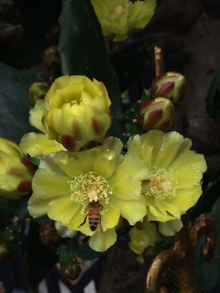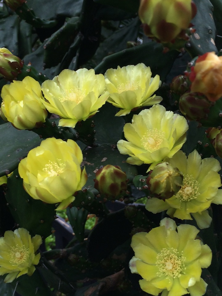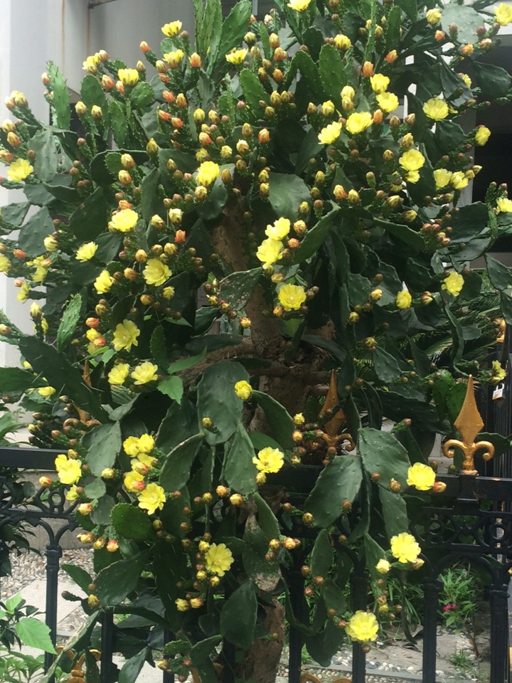现在是仙人掌盛花期,我家这株仙人掌养了12年,高达2.5米,每年开满黄色花朵,今与大家共赏!