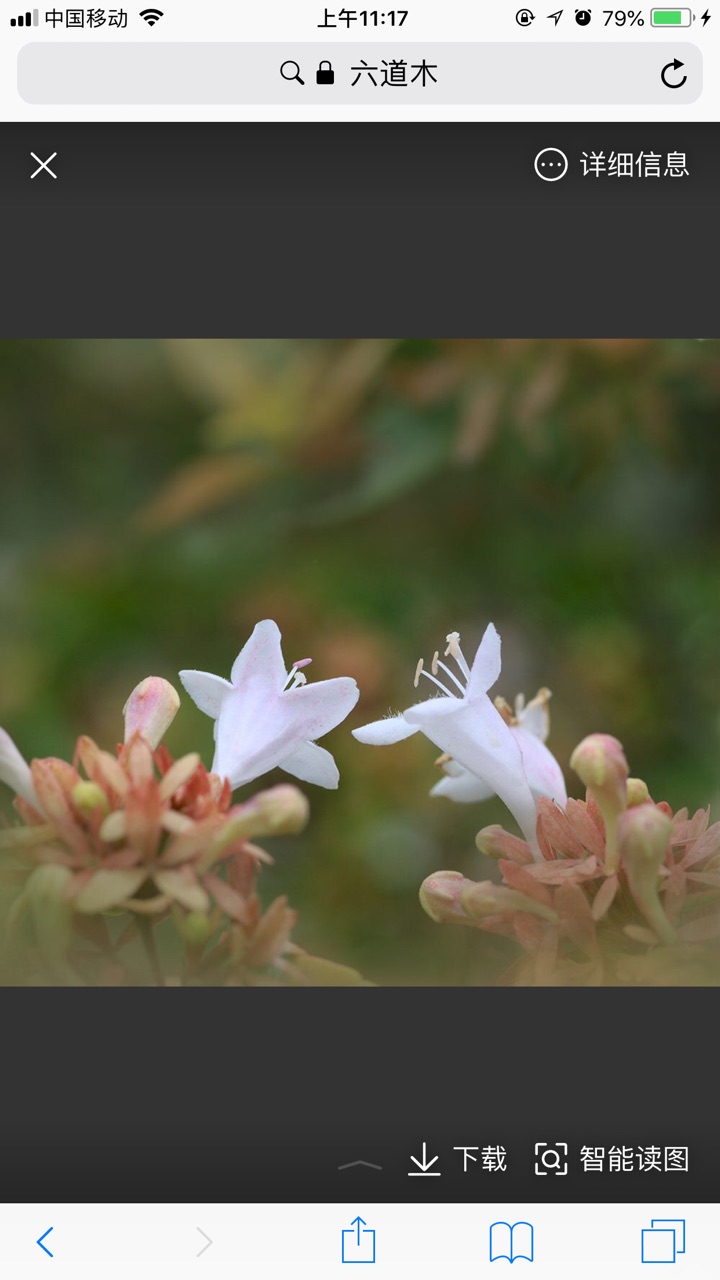 六道木,Abelia biflora 落叶灌木,早春开花,花单生叶腋 花冠4裂,裂片圆形 大花六道木,Abelia × grandiflora 糯米条和六道木杂交而成 半常绿灌木,庭园栽培 聚伞花序生叶腋,花冠裂片5 花期6至11月,果期萼裂片变红色