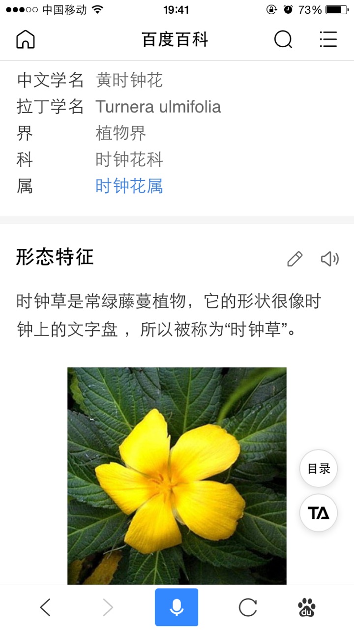 物种名称: 时钟花,拉丁学名:Turnera ulmifolia ,属时钟花科、时钟花属。是生长在南美热带雨林的常绿藤蔓植物,它的形状很像时钟上的文字盘 ,所以被称为“时钟花”。