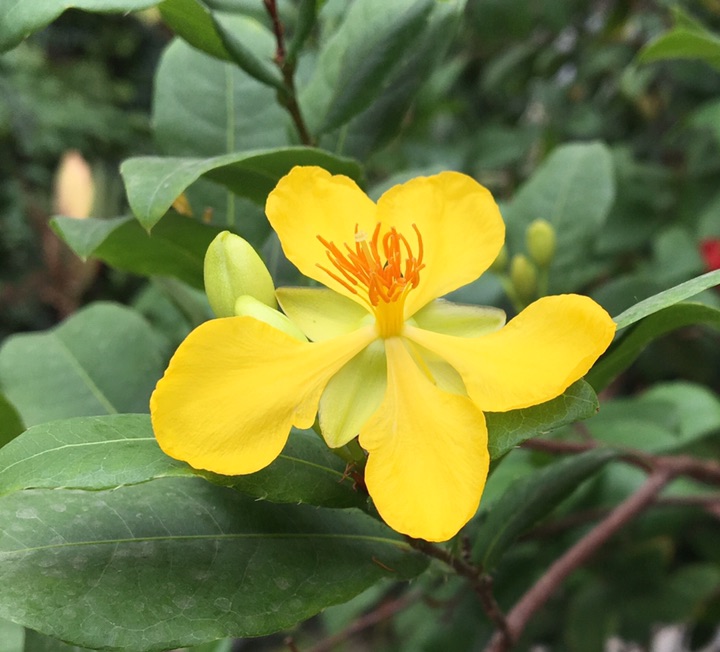 昨天在北京植物园温室还看到了金莲木,也就是我们所说的米老鼠树,幸运的是我不仅看到了被称为红色米老鼠的果实,还看到了它的前身,一朵黄花。