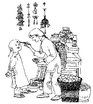 同时,买许多鸡蛋来,在每个的顶上敲一个小洞,放进一只蜘蛛去,用纸把洞封好,把蛋放在打蚊烟的火炉里煨。煨熟了,打开蛋来,取去蜘蛛的尸体,把蛋给孩子们吃。