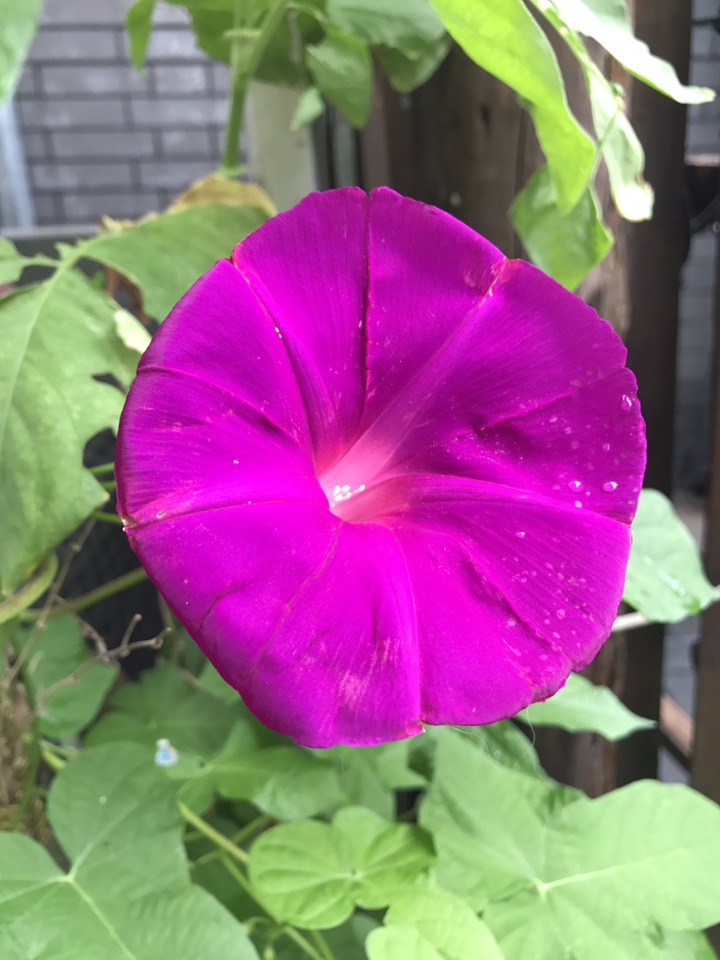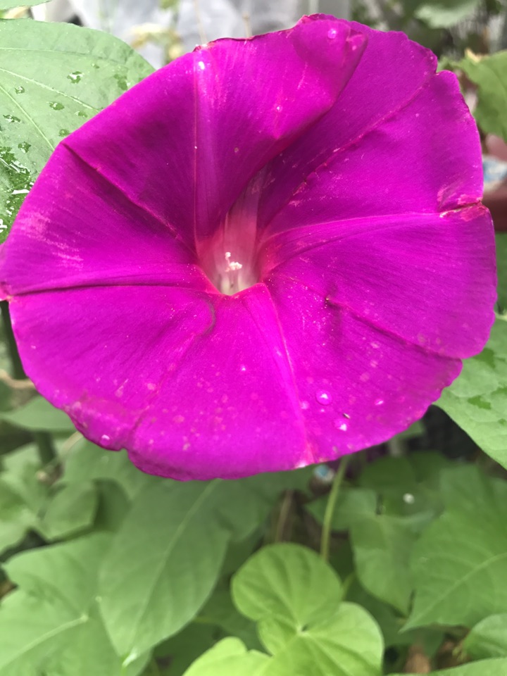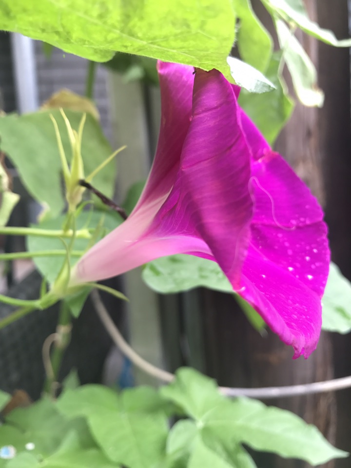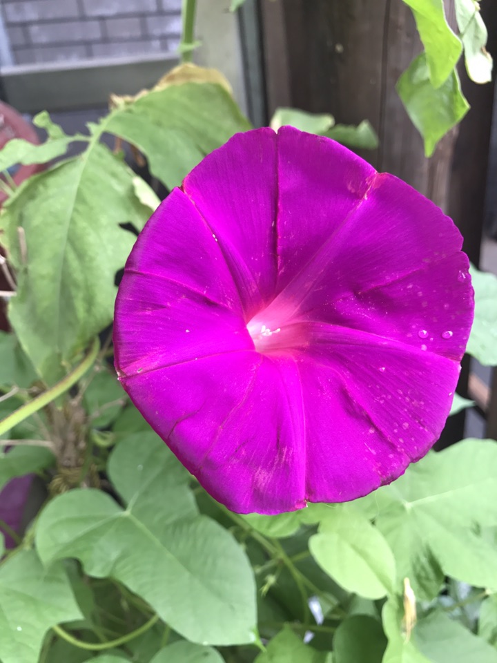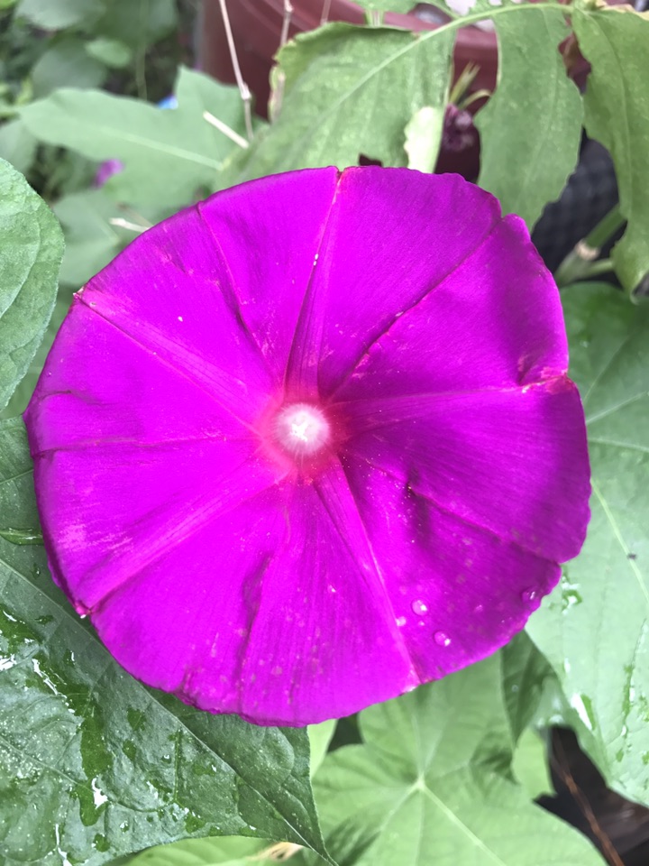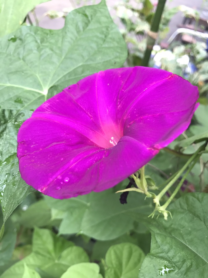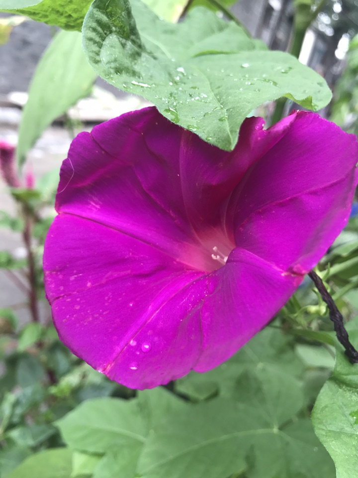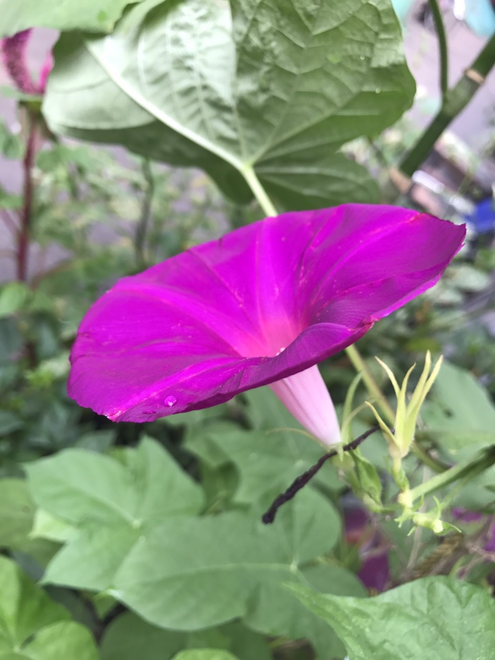 这个牵牛花不光花大,叶子也大,临走前还是拍了一张叶子的照片