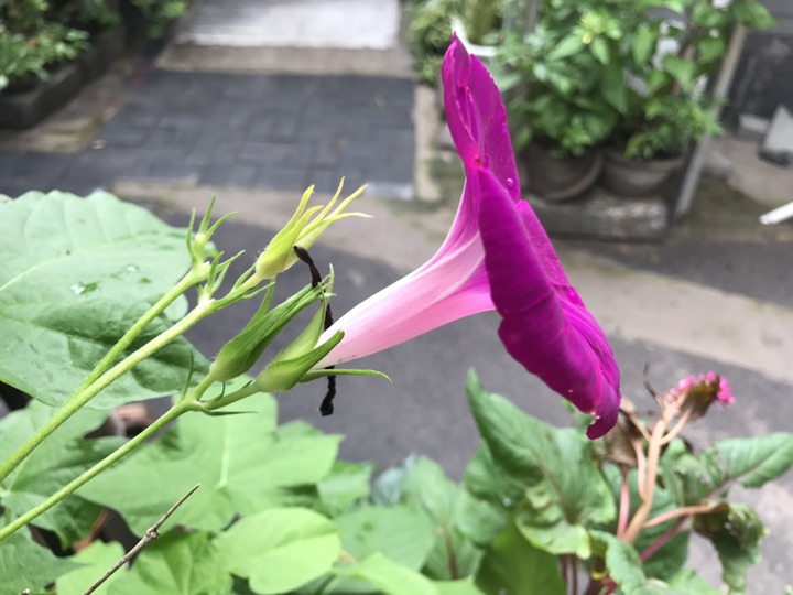 这应该是我见过的最大的牵牛花了,花是在离我住处不远的一个胡同里。下过雨的天气特别的凉爽,午饭后信步沿着胡同慢慢的踱着步子,一路看花一路拍。不经意间看到这么一大朵牵牛花,紫红的颜色煞是好看