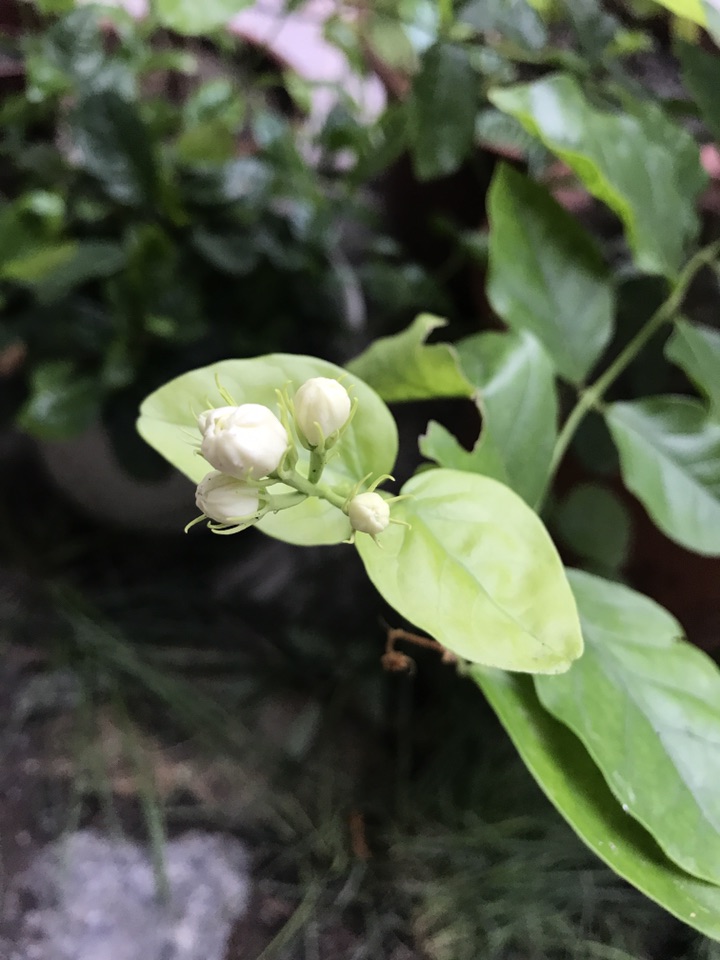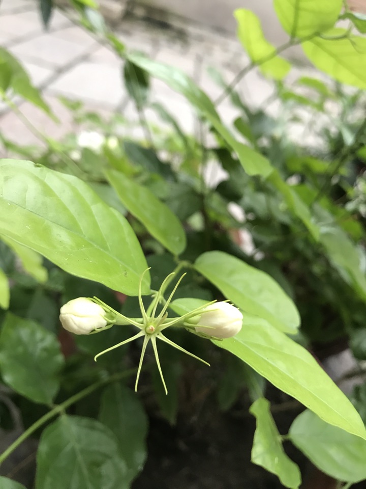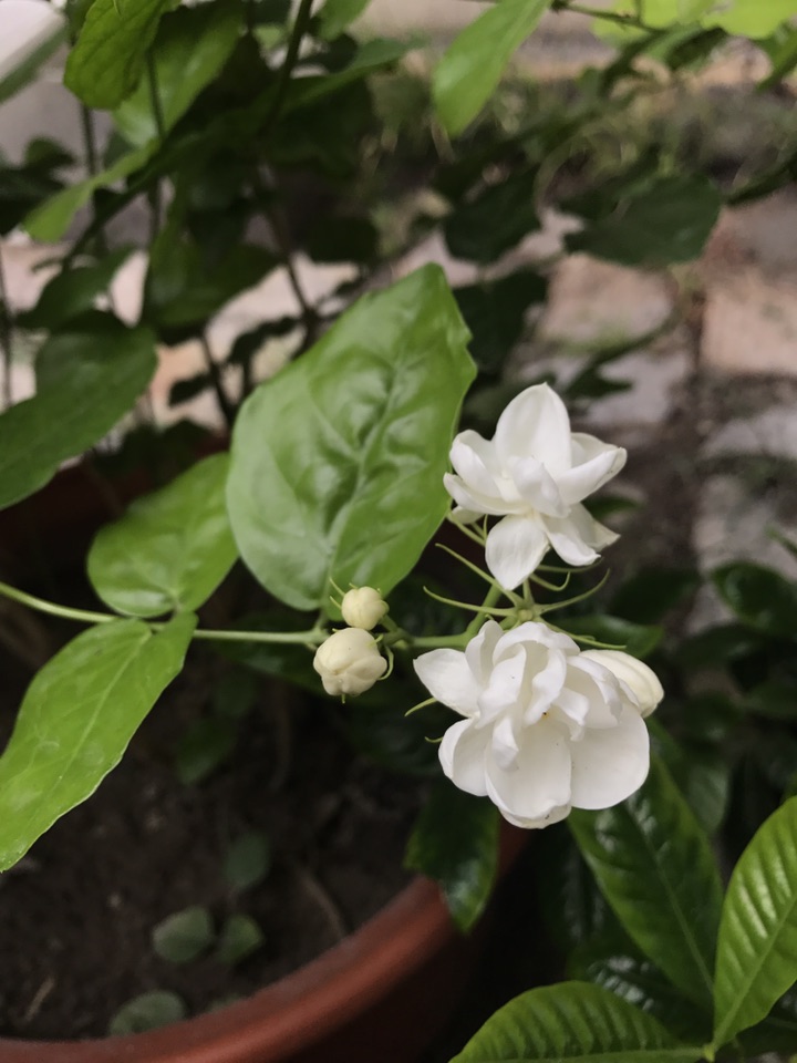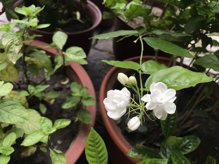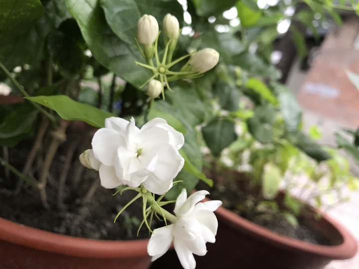 这次的茉莉花是在前门大街的某个胡同里的,只有小小的一盆,花苞不多,花开的也不多可一样有她无与伦比的美。