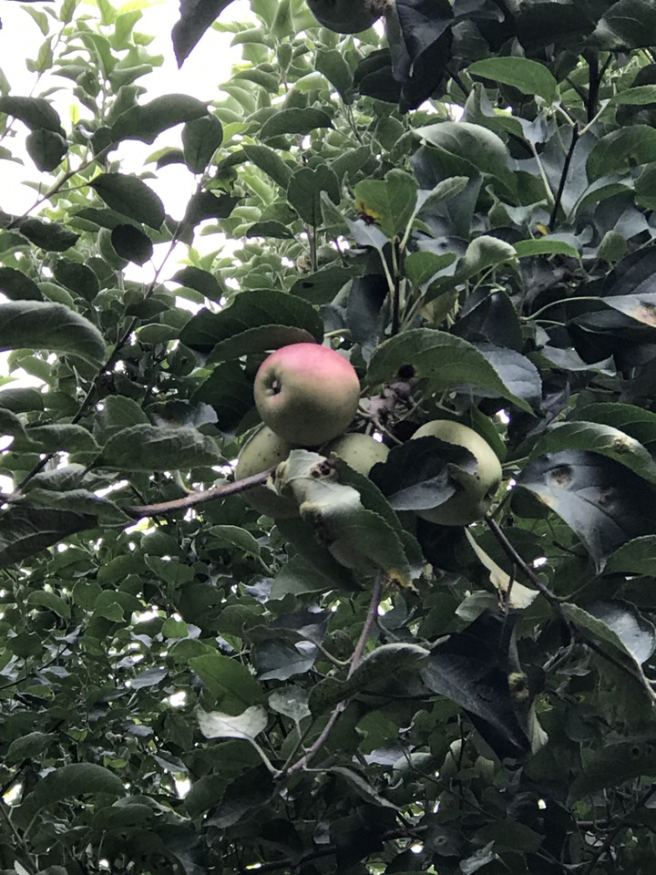 小院的小苹果很多都开始红了,可是由于比较高,估计得拿梯子才能够得着吧。老爷爷想必是不会登高爬树的,就等着风等着雨等着它自然掉落吧