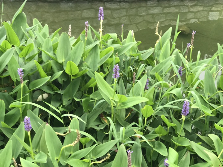 它的花期也够长的,三里河边的梭鱼草拍了一次又一次,每次途径都能听到有人问这是什么花,开的还这样子好看。刚巧我在旁边拍花的时候我便会告诉他们花的名字,走过了我也就懒得去科普了