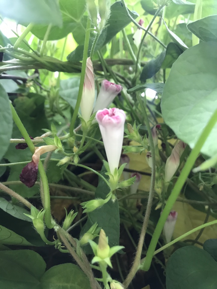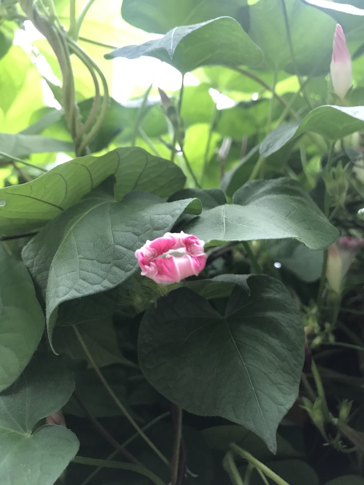 不经意间发现在那片丝瓜的绿藤下藏着几个迷你版冰淇淋甜筒,粉嫩的颜色一看就知道是草莓味儿的