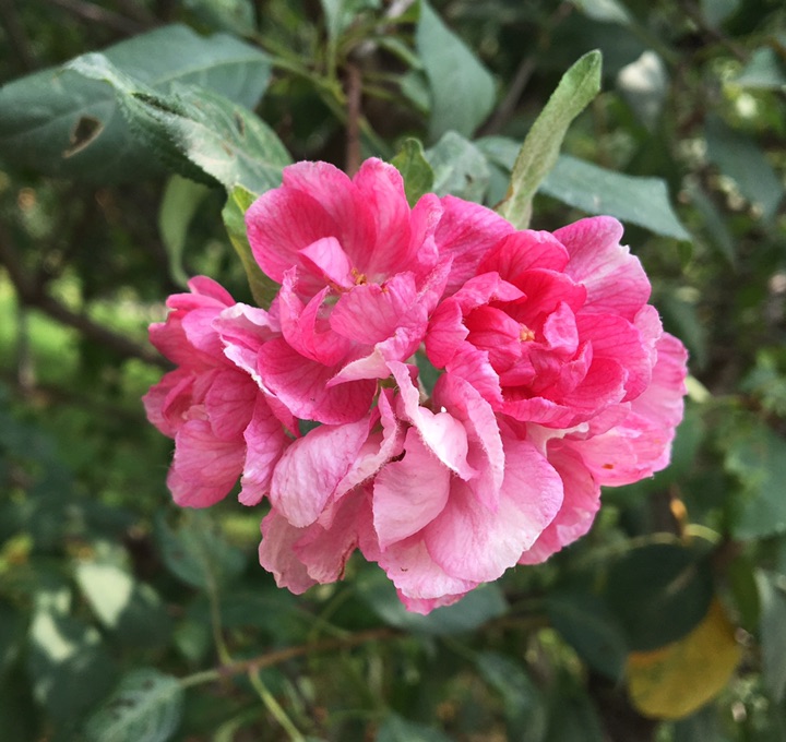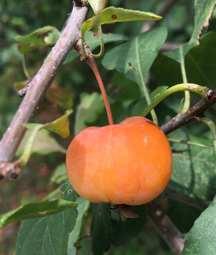 你绝对想不到,在末伏的八月,居然还有这么漂亮的海棠花,旁边就是黄透了的果子,这是凯尔斯海棠。