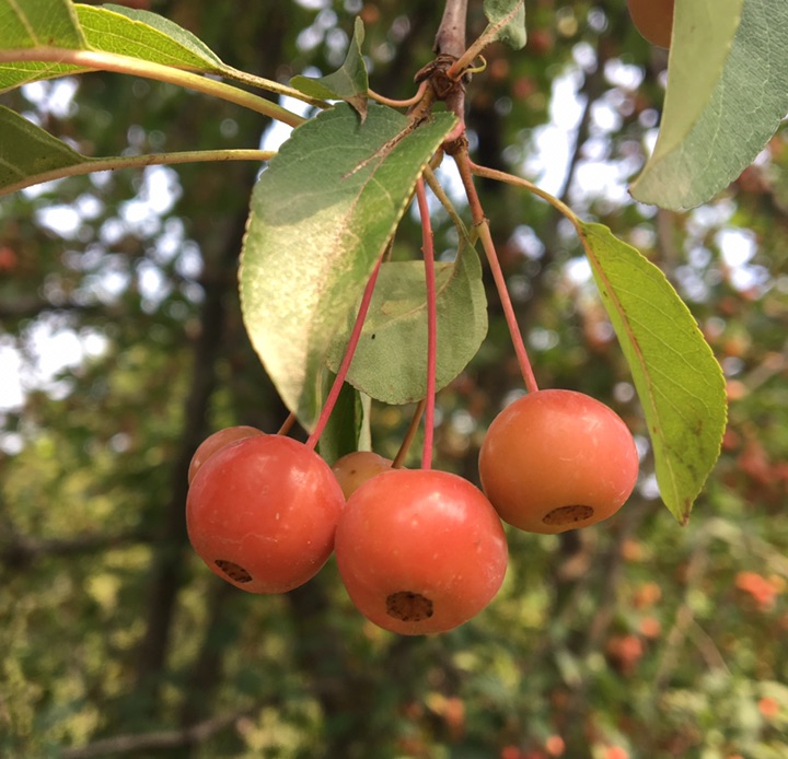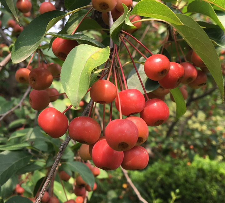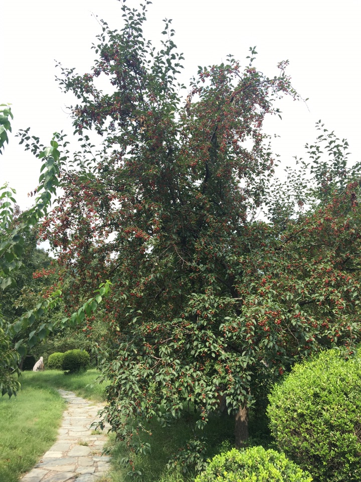 偶遇垂丝海棠,惊诧于那满枝的果子,小小的,红红的,好一派丰收的景象。
