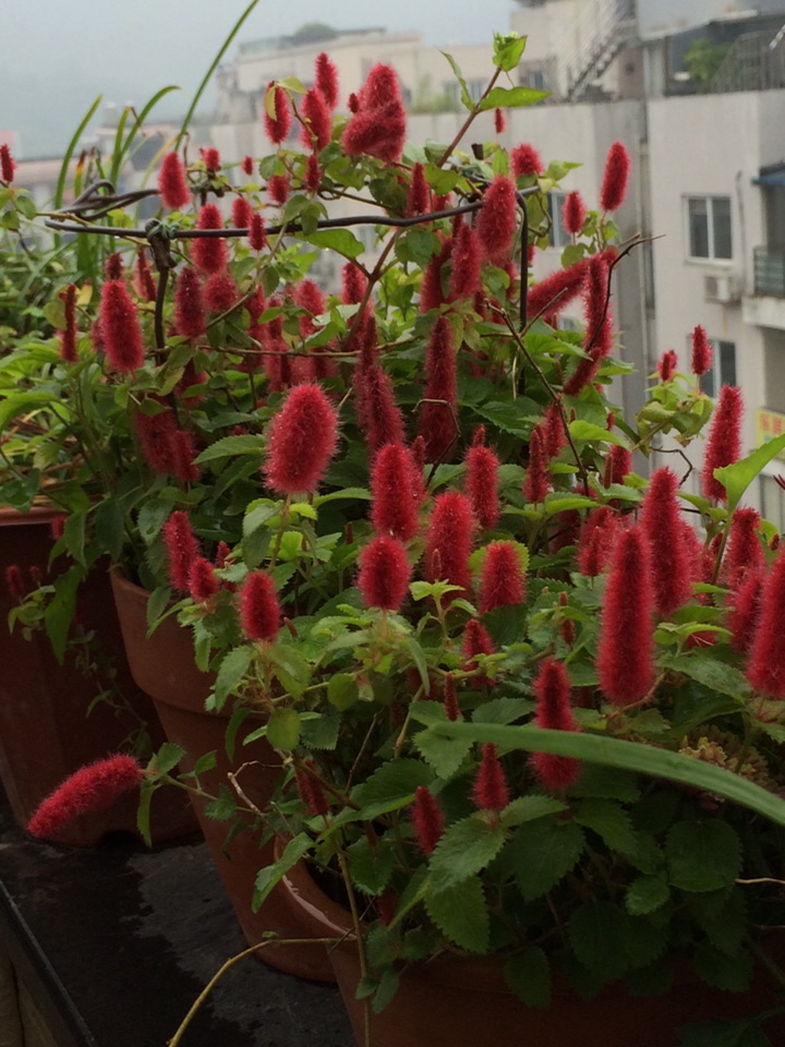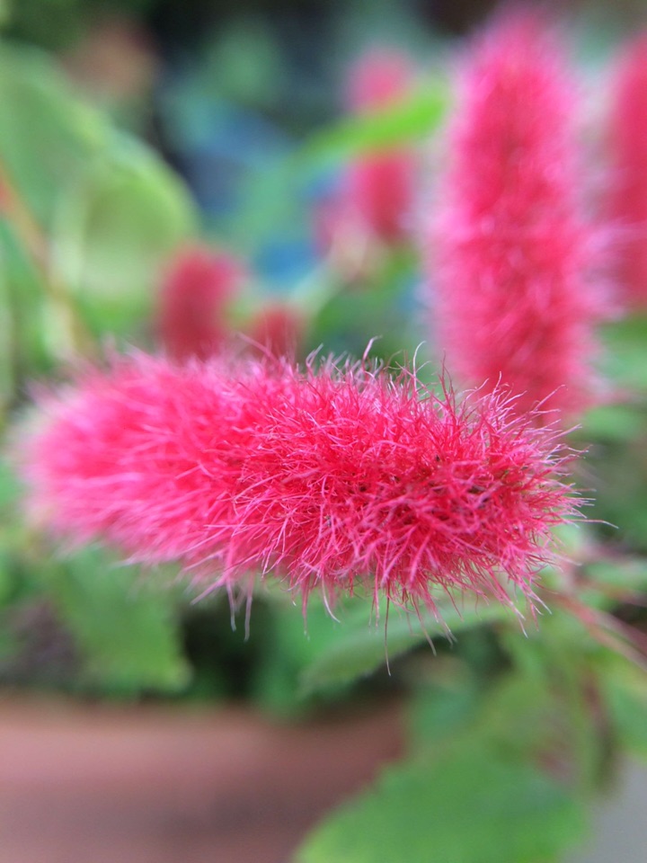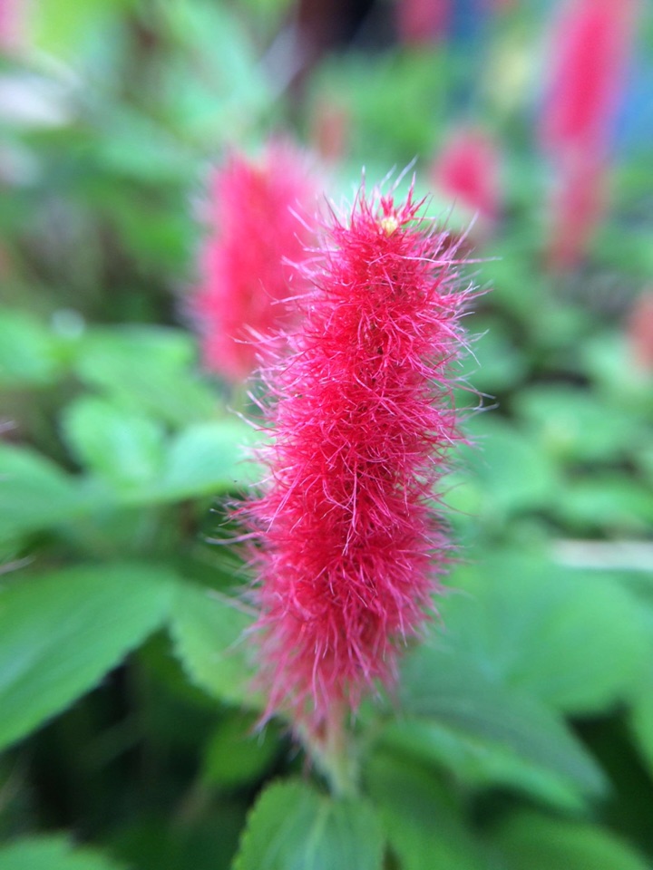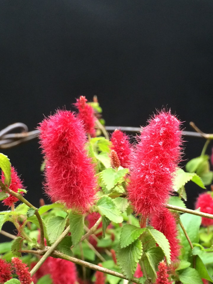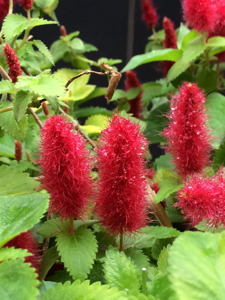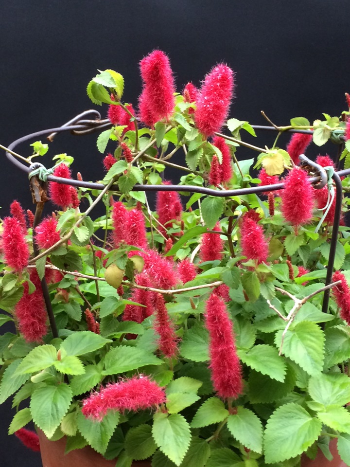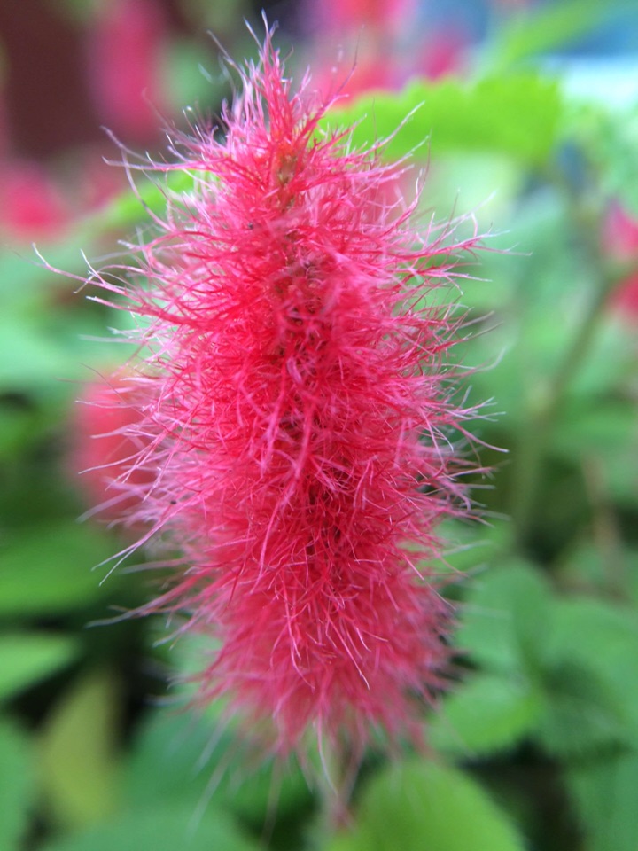 红尾铁苋是多年生常绿蔓性小灌木,株高20cm,适合家庭盆栽。叶互生,卵圆形,先端渐尖,叶缘有细齿,基部楔形,柔荑花序,具毛、红色。因其形似猫的尾巴,故又名猫尾红。现在是盛花期,扦插容易,成活率很高,扦插苗开花比母本开的好!