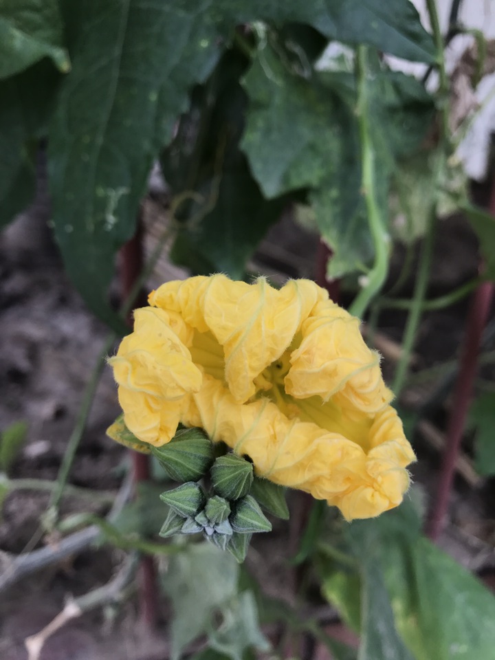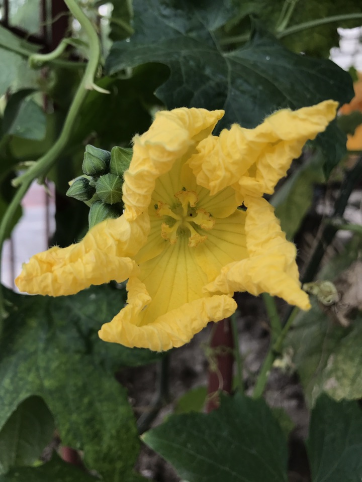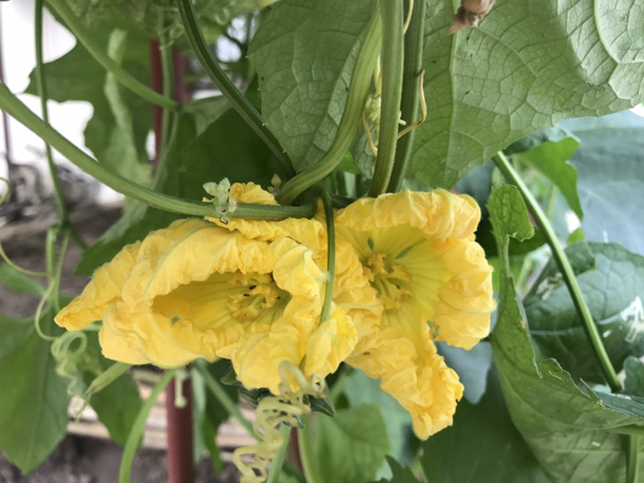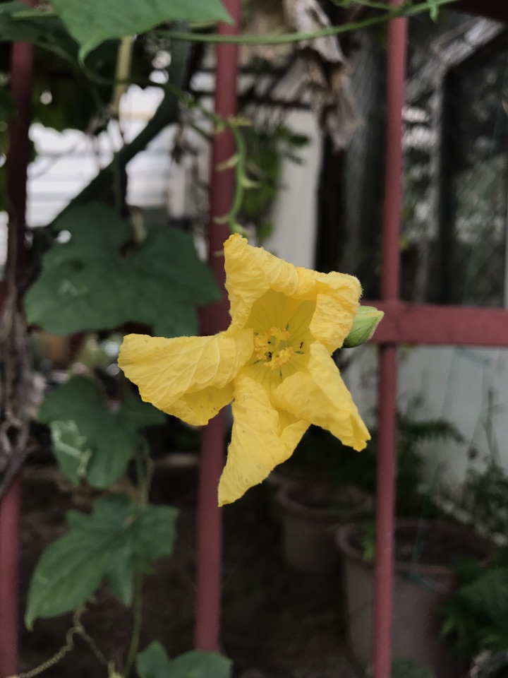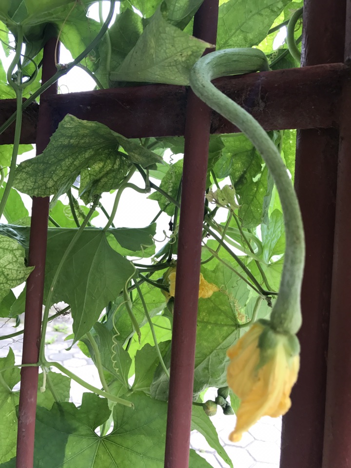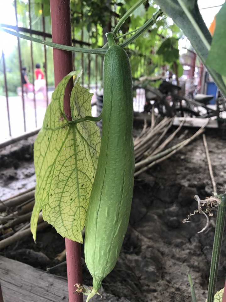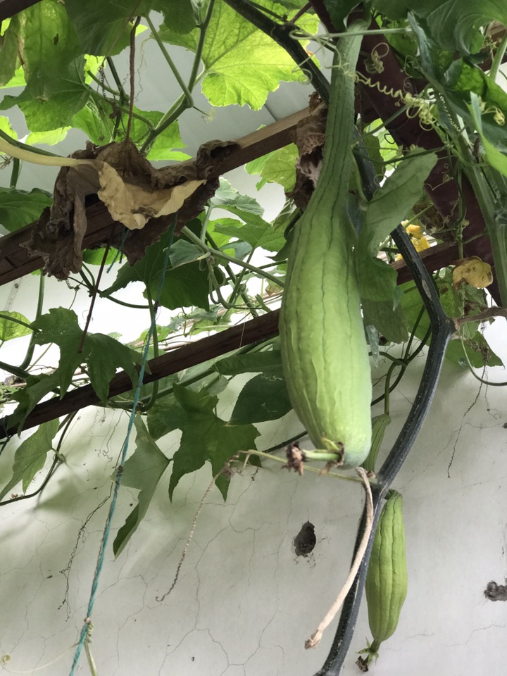 这个细长蜿蜒的造型不由得让我想到了蛇,真的感觉好形象有没有?上次拍的丝瓜是攀爬于墙头的,这次的丝瓜却有了属于自己的秋千架,花花同样开了不少,结果就这寥寥几根。不过感觉这边的人种这些瓜果蔬菜多是造景的,不然怎么都任由它老在枝头无人采?