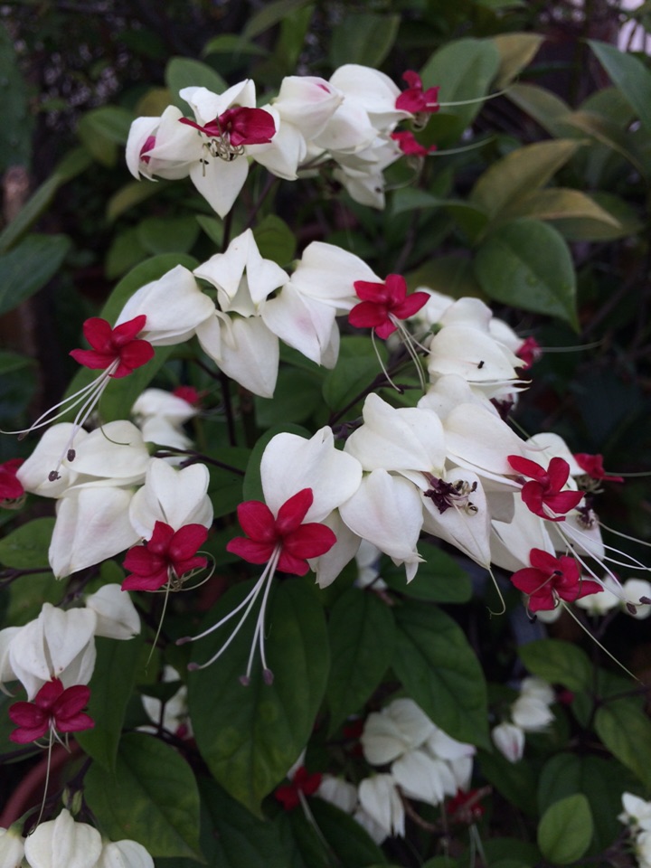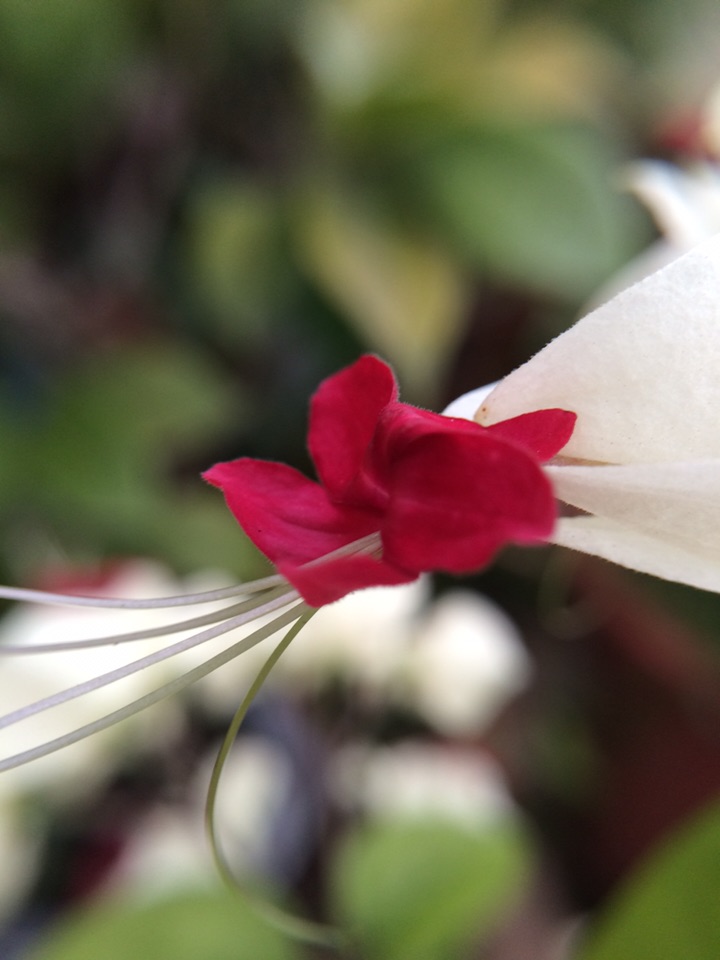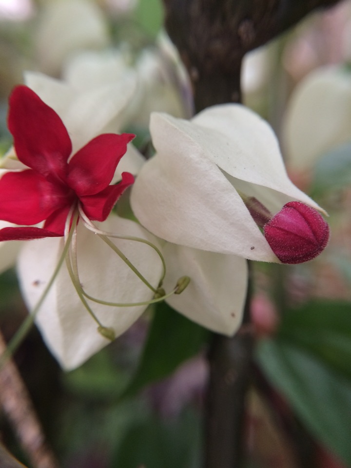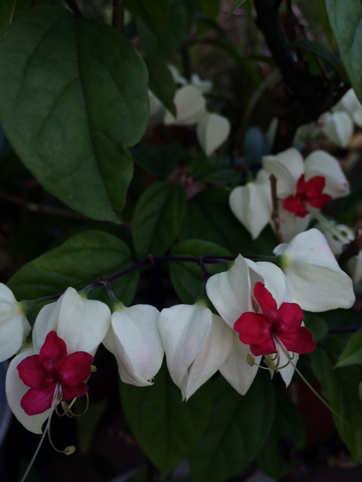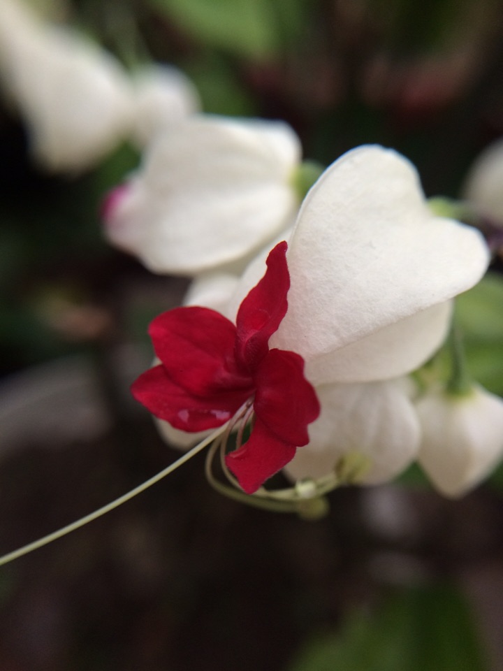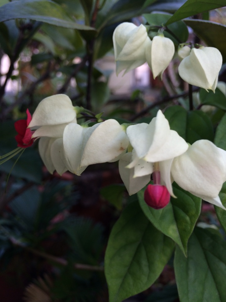 原产于非洲西部的龙吐珠,我国南方城市广为栽培。龙吐珠以其洁白无瑕的花萼和蕴藏生命之火的红珠,红白相嵌,形如游龙吐珠,成为南国奇葩。