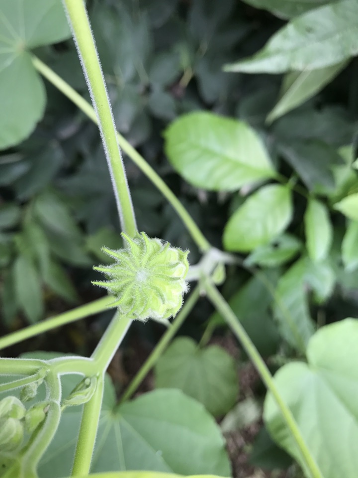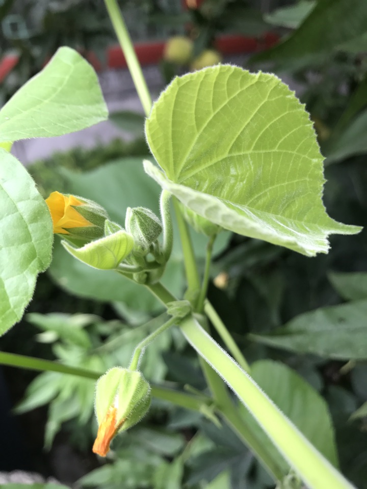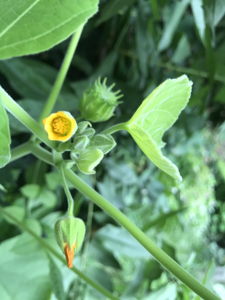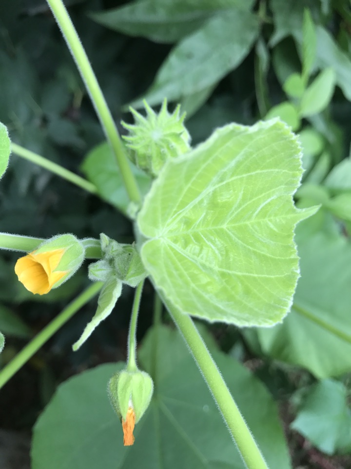 说到苘麻,可能仍有人会觉得陌生,但看到它的样子,相信90%以上的人会惊叹:“原来是它!”是的,苘麻也是属于路边常见的却可能叫不出名来的野花野草。这株苘麻是长在小院牡丹花旁的,很早就发现了,只是在拍苹果那天才偶然看到一朵黄色的小花才发现了原来它都开花了。看它隐藏于大心叶子下的小黄花实在别致,就想着拍拍看吧,看能不能把她的美定格了。这一拍不要紧,居然让我发现了一枚小青果,胖嘟嘟的戴着一个小皇冠,据说拨开外面的皮,里面满满的小白籽可以吃,你吃过吗?味道怎么样呢?