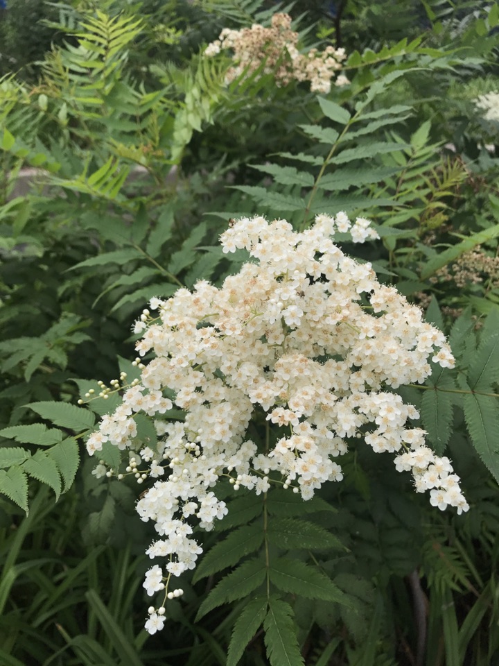 珍珠梅(学名:Sorbaria sorbifolia (L.)A. Br)是蔷薇科,珍珠梅属灌木。好几个月前她便香遍京城,没成想在这个季节也能看到她的身影。还是熟悉的身型,还是熟悉的味道,优美绝伦而又芳香四溢