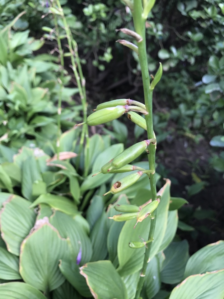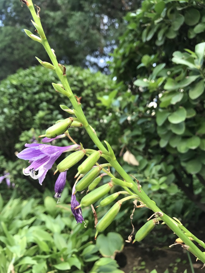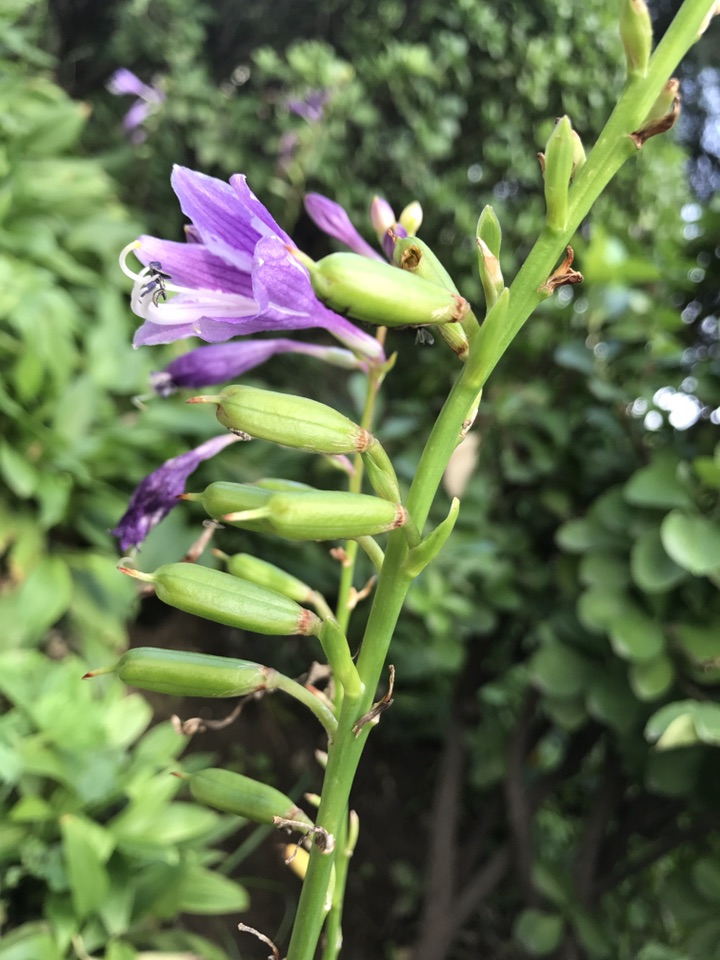 开花早的紫萼已慢慢的结出了圆柱状的蒴果, 形状感觉有点像芝麻,只是较芝麻要光滑素净的多。