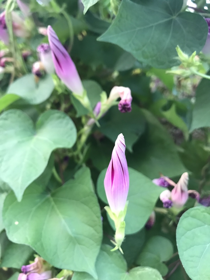 圆叶牵牛还是那丛圆叶牵牛,可在傍晚是看不到它热闹的绽放的,那么多的粉嫩骨朵儿,看着不要太有食欲
