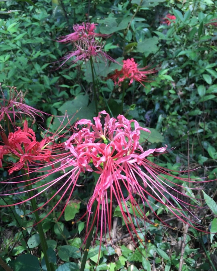 彼岸花是日本的名字,在中国称为“石蒜”,在印度梵文佛经里称为“曼殊沙华”。维基百科说:“日本节日中,春分前后三天叫春彼岸,秋分前后三天叫秋彼岸,是扫墓的日子。彼岸花开在秋彼岸期间,非常准时,所以才叫彼岸花。”“而传说中彼岸花是开在黄泉之路的花朵,沿路大批大批的开着这花,远远看上去就像是血所铺成的地毯,又因其红似火而被喻为‘火照之路’,也是这长长黄泉路上唯一的风景与色彩,而人就踏着这花的指引通向幽冥之狱,与阳间分离。”苏轼在妻子王弗去世十年后,写下一首词: