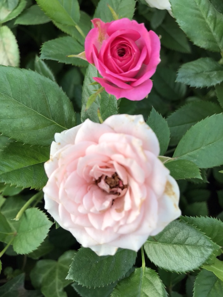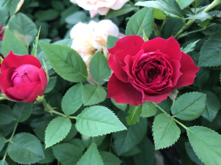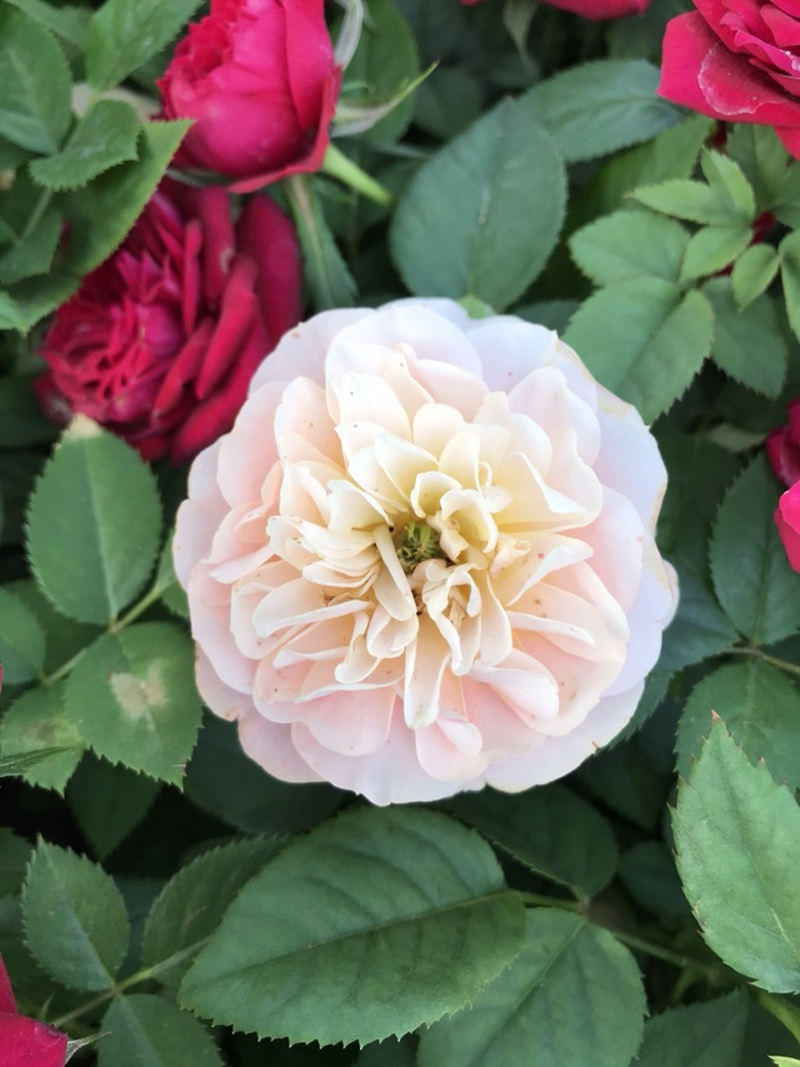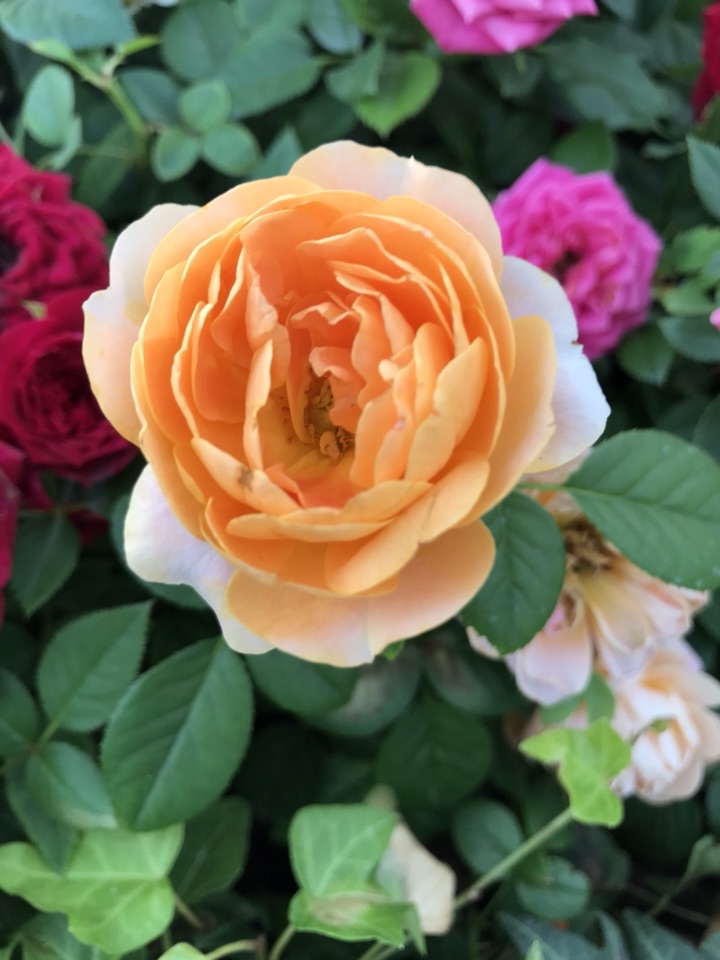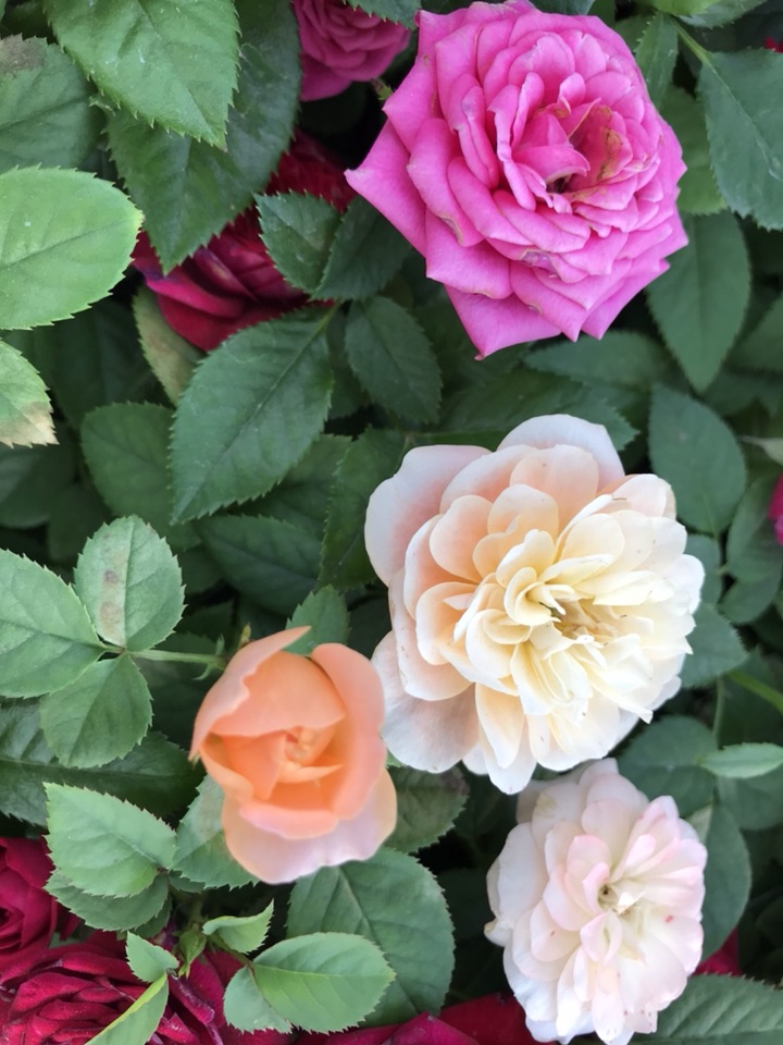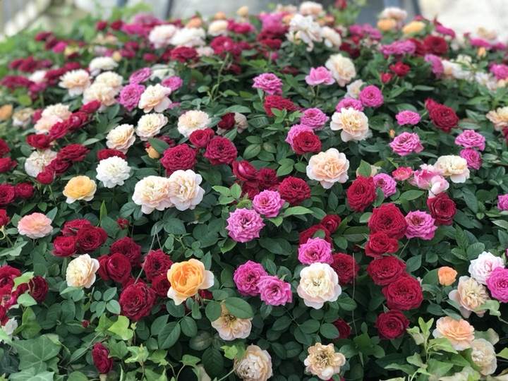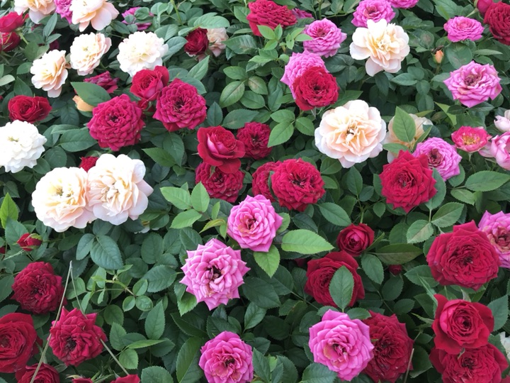 第一次看到月季这么的组合在一起,各种花色、各种花型,一开始还以为是假花呢!仔仔细细的看了一遍后还不忘用手摸摸最后凑了鼻子过去,嗯,真香呐!这么娇艳美丽的花花组合有点太雍容华贵了吧