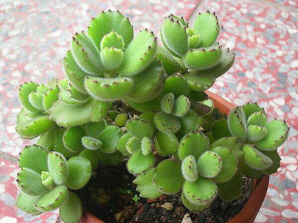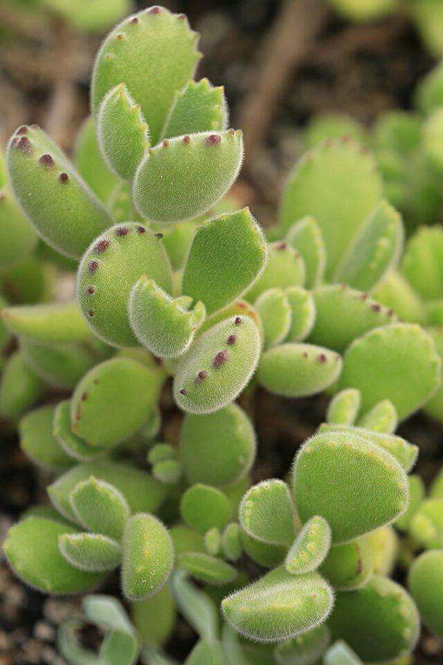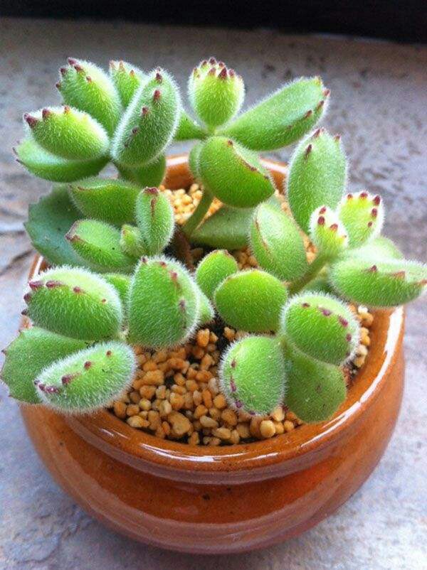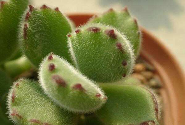 熊童子——叶片具绒毛,前端有数个小短尖,形似熊的小爪子。原产于南非开普省。