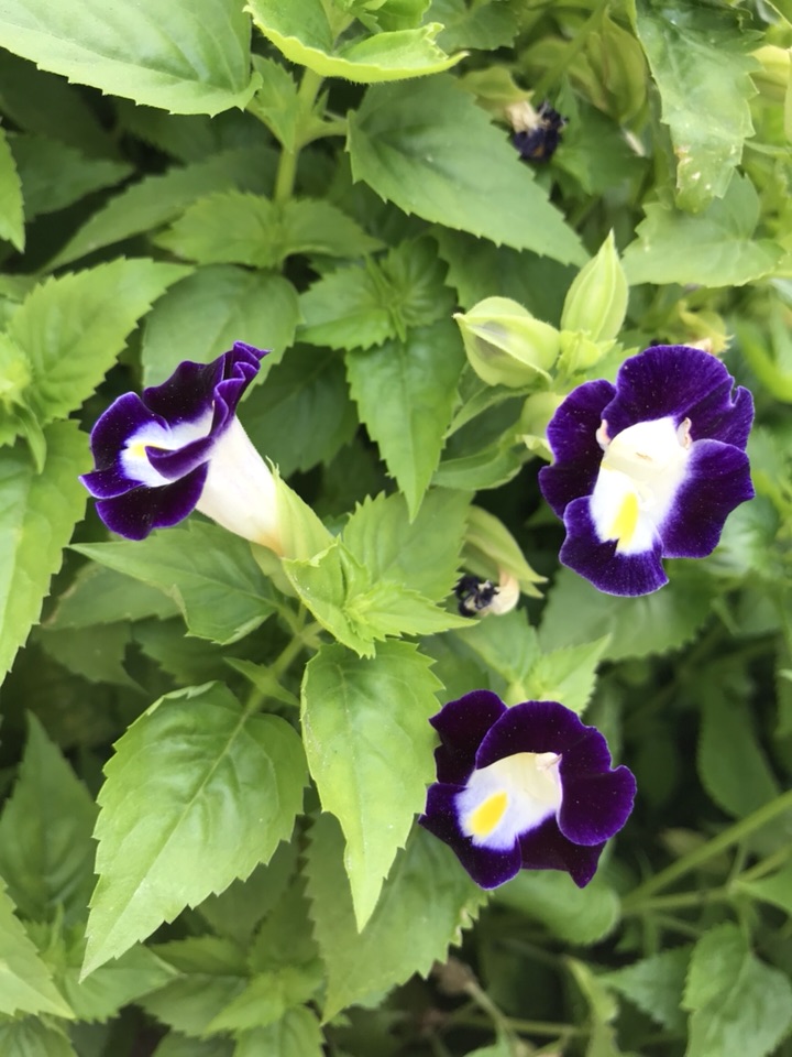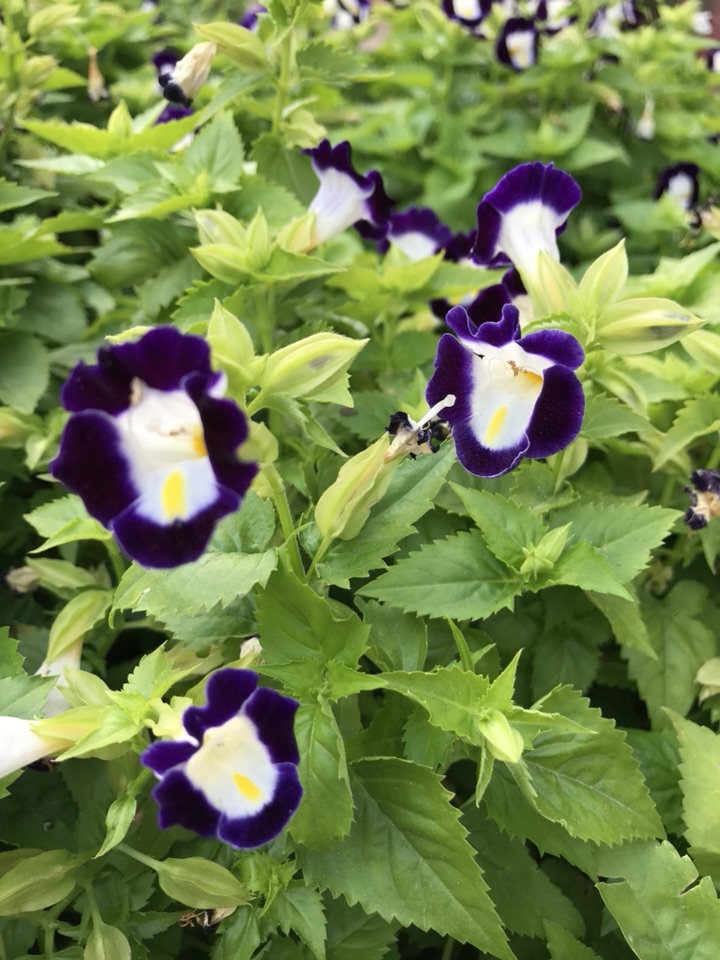 每次看到夏菫它都不是单个颜色的独立存在 ,虽说也不是几个颜色混杂的种植在一起,但是她的旁边总能看到其他的颜色。其花色也丰富,白、桃红、紫红或紫蓝,喉部均有黄色斑点,此中又属紫蓝和桃红的搭配最为常见。
