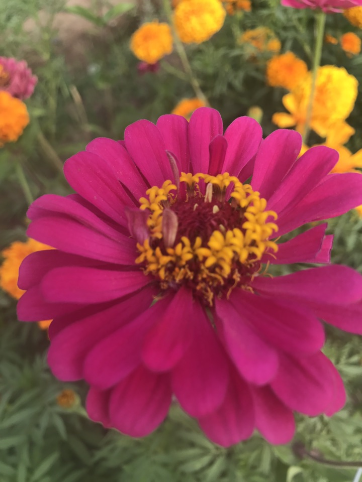 深粉色花瓣烘托出黄色花蕊!美了颜色!