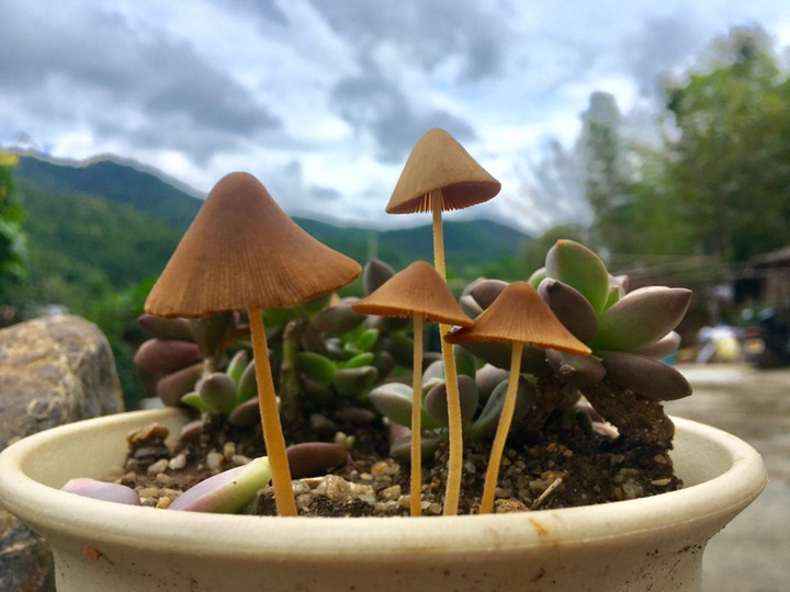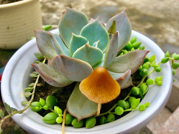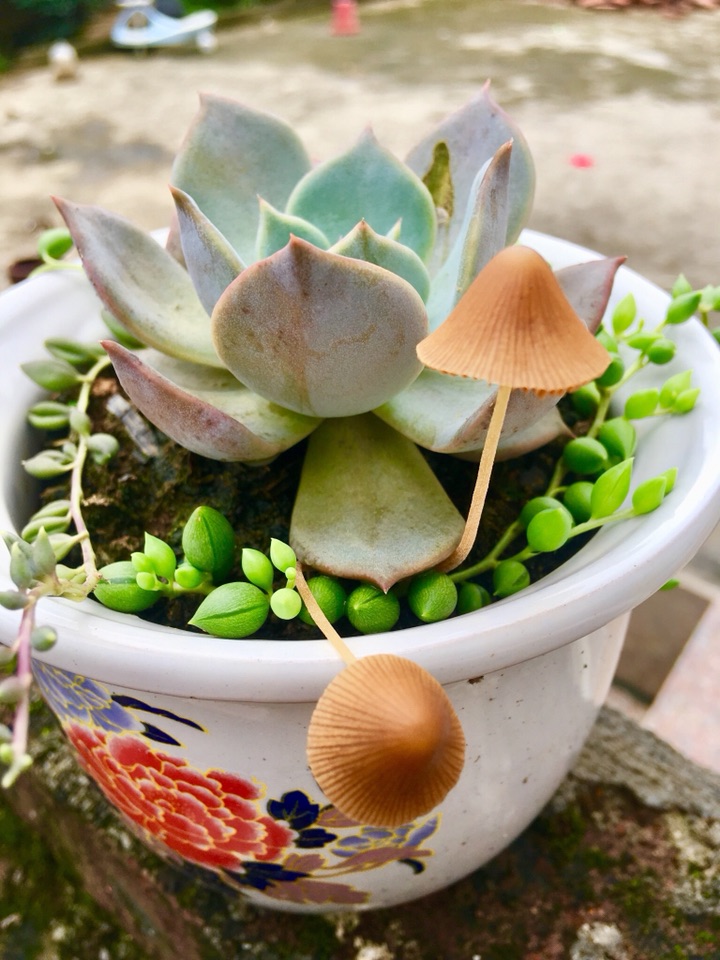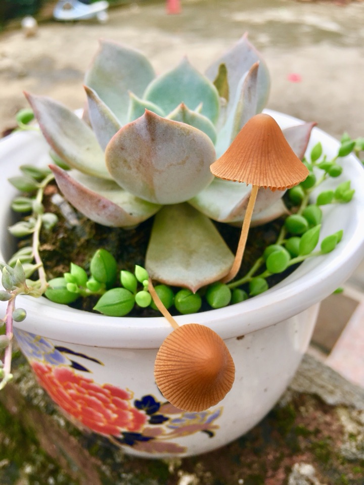 小蘑菇早上开出来,闯进了珠子的生活,晚上枯萎,停留一天,珠子会不舍吗?谁会闯进我们的世界,停留片刻,成为过客,也许是缘分,也许是注定,但都是我们生活的一部分,我们的人生就如这盆栽。