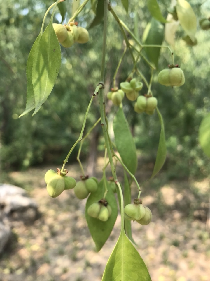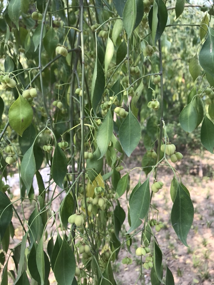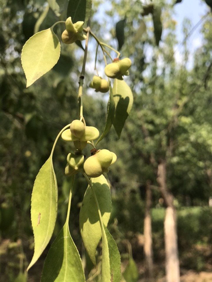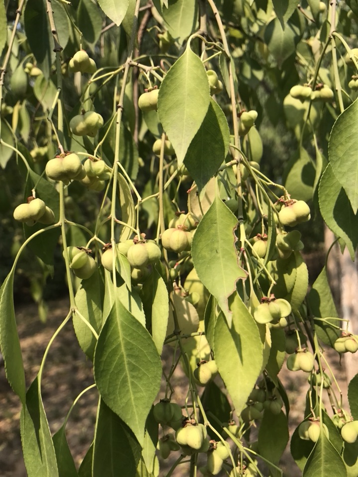 丝绵木(拉丁文名:Euonymus maackii Rupr.),别名:白杜、明开夜合、华北卫矛、桃叶卫矛,卫矛科、卫矛属小乔木植物,高可达6米。之前有拍过它的花,小小的精致至极。而它的果实同样精致,蒴果倒圆心状,4浅裂,长6-8毫米,直径9-10毫米,现在看还没觉得有多好看,等果实成熟后果皮会变成粉红色,一串串的粉色垂垂拂动那景象别提有多美呢!
