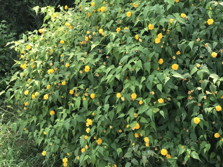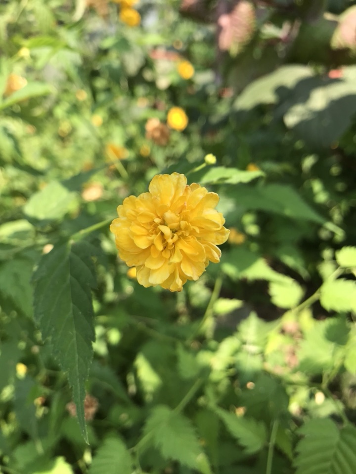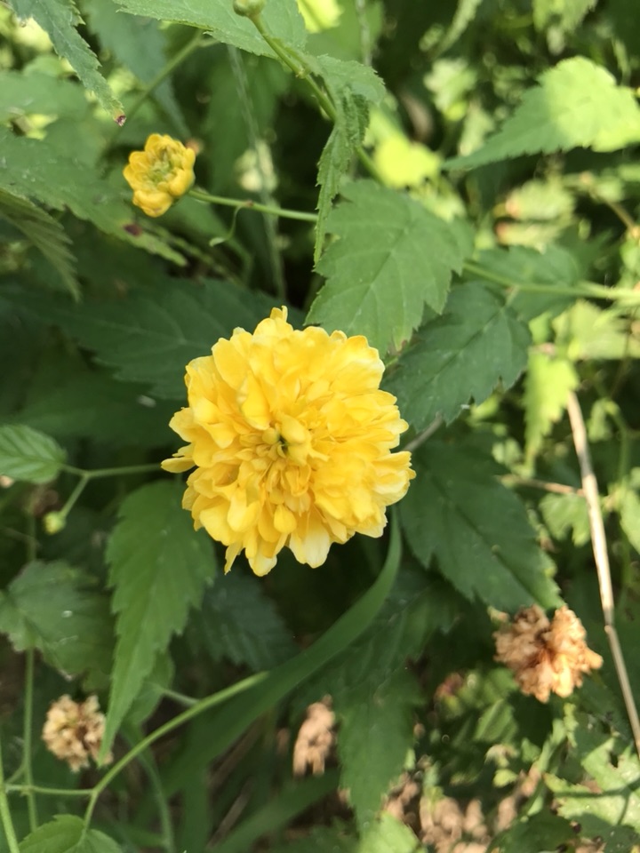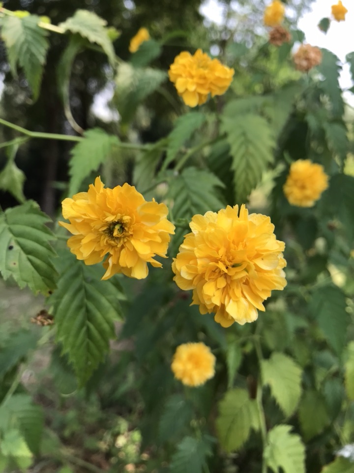 棣棠为蔷薇科棣棠花属落叶灌木,别名: 地棠(鄢陵)、黄榆叶梅、黄度梅、山吹、蜂棠花、麻叶棣棠、黄花榆叶梅 (黄榆梅)。桃花盛开的时候我就看到过它的身影了,直至国庆后你还能看到它的盛开,它的花期也是长的可以。