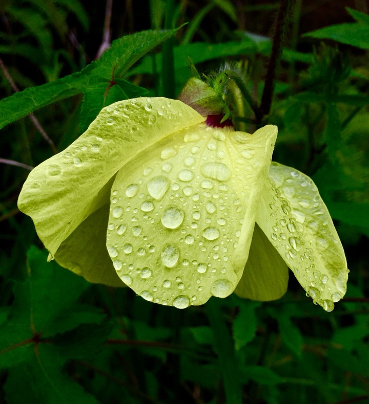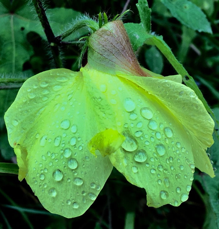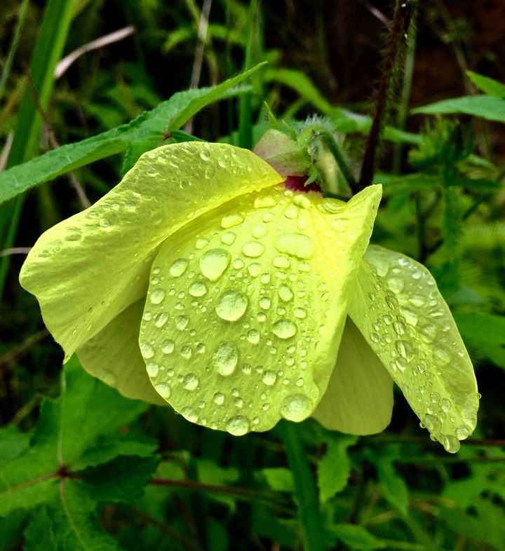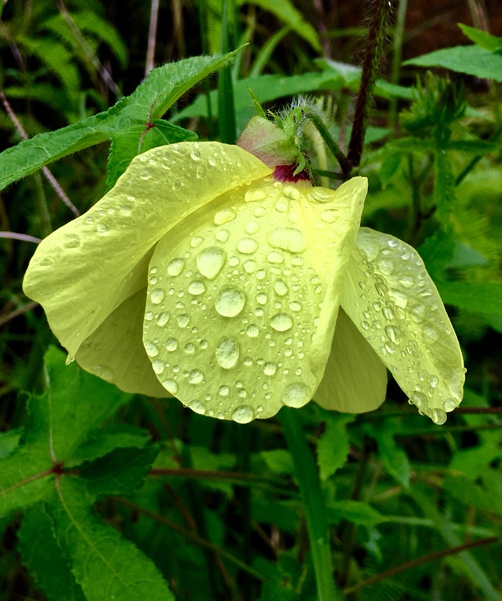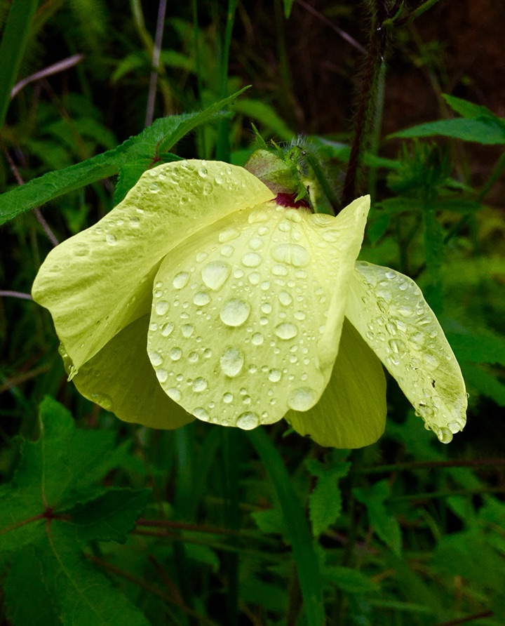 初秋,正如其名,野秋葵点缀在坡边路旁的草丛中,格外清新。