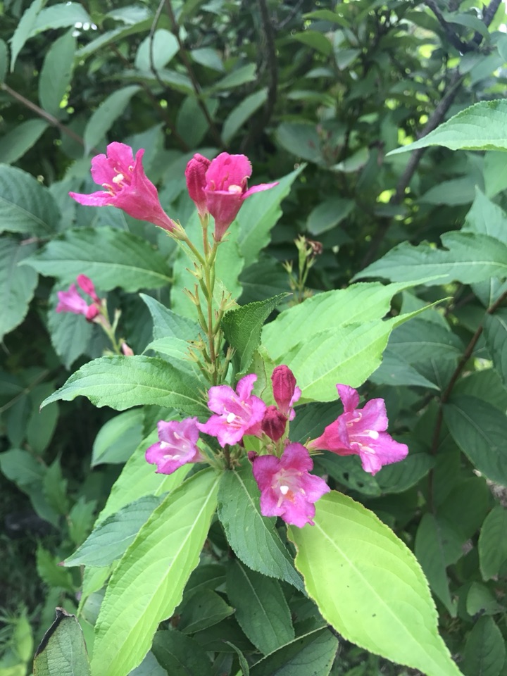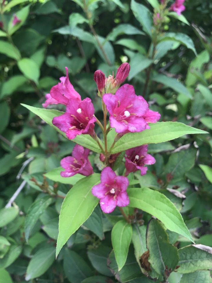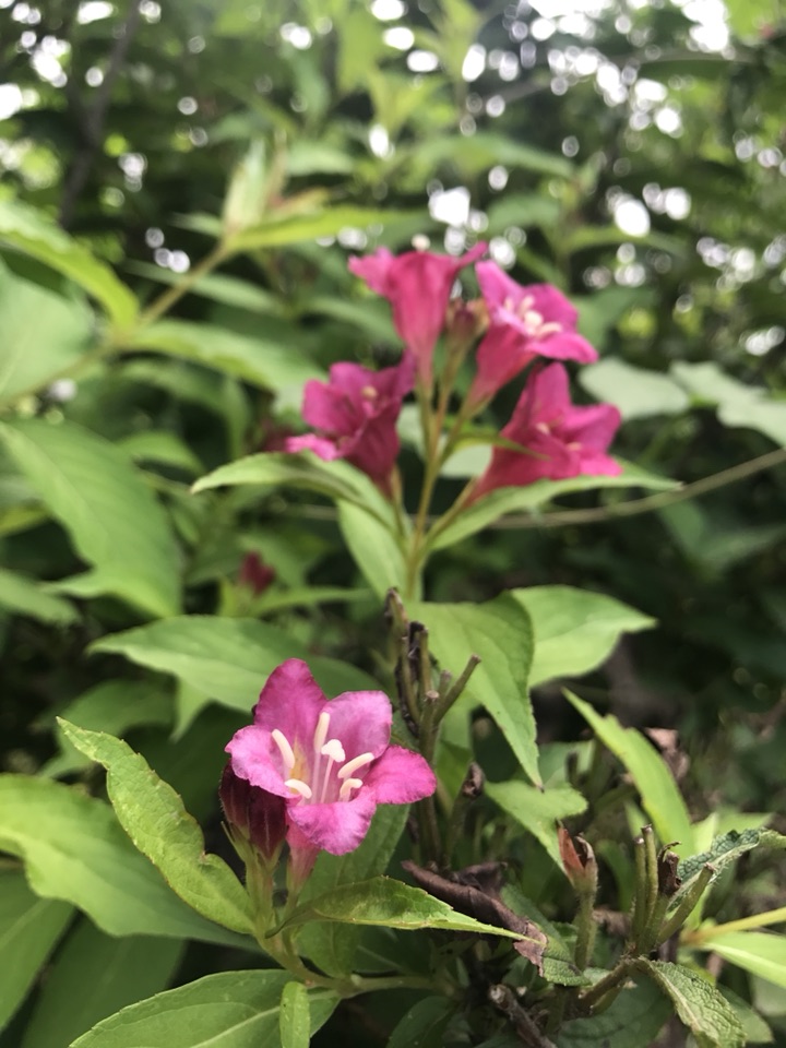 锦带花也算是这个季节出镜率比较高的植物了,百度说其花期4-6月。可那个时段记忆中常亮相的是红王子锦带花,七八月份以来锦带花倒是在公园里很常见了