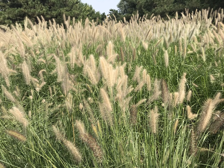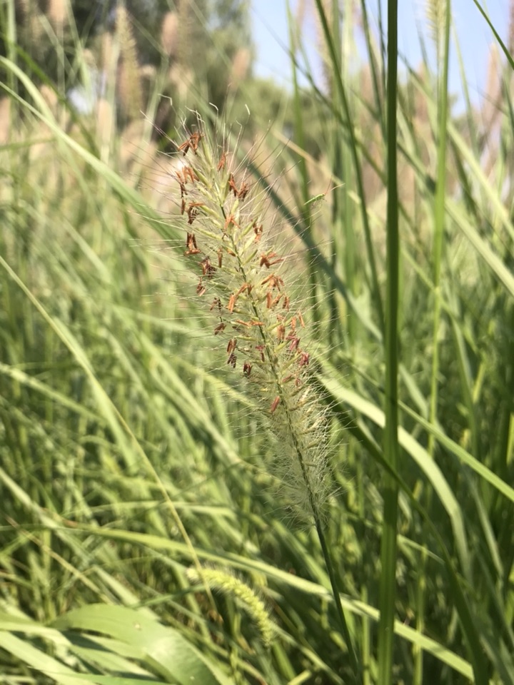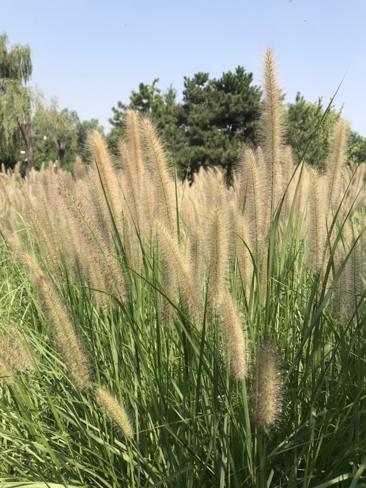狼尾草之前拍过一次,那次遇见的它只是一丛一丛的间隔开在道路的两边,虽说后面也看到很多成片的狼尾草,想着才拍过了的也就没有继续在拍了。这次看到它是在通州大运河森林公园,超规模的一大片是从未领略过的,中间还没有夹杂着大的树木抢镜,地面也算平坦,放眼望去一片生机盎然的尾巴随风摇曳,仿佛在向途径它身边的人问好似的,别具一番情趣。