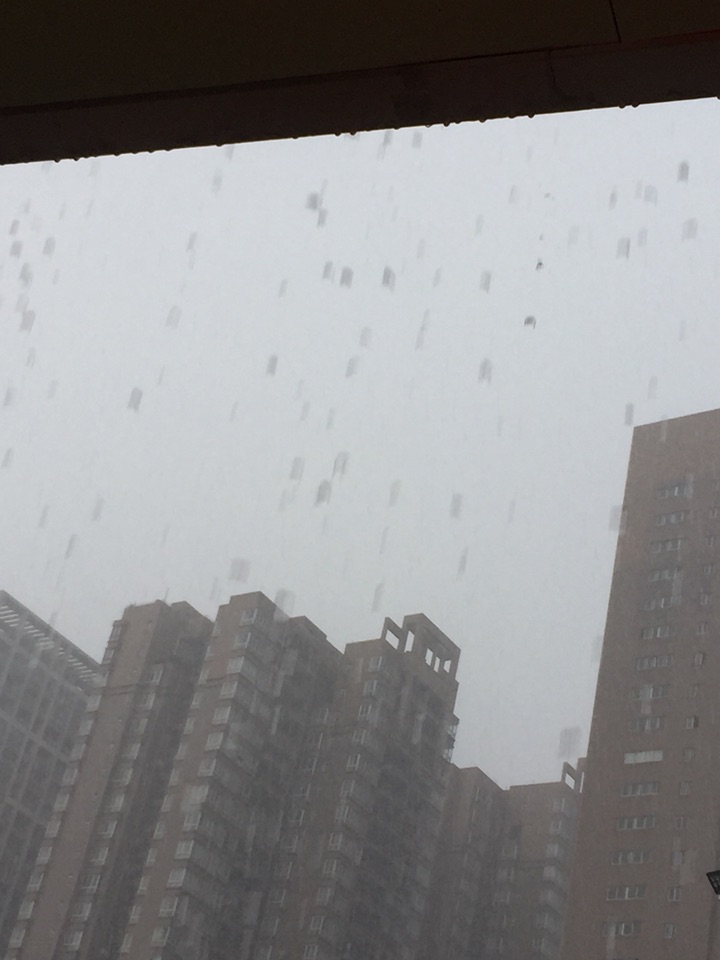 前几分钟天就特别黑,我猜到要下大雨。赶紧吧我的鸡冠刺桐救了回来。