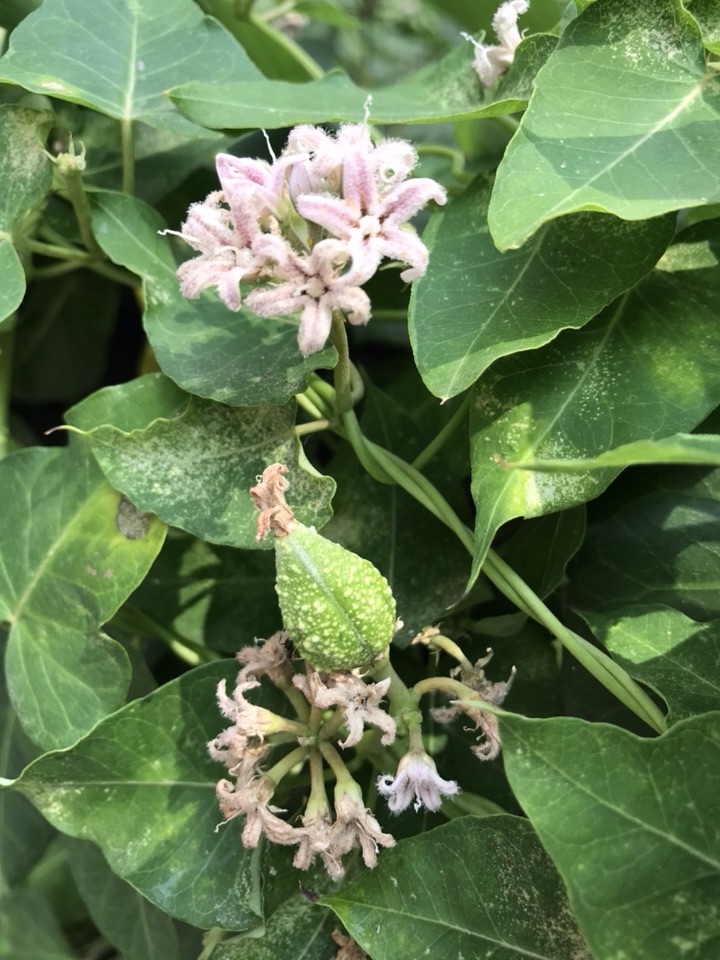 不出去还不知道原来萝藦是这么常见的,公园、街边、小区,只要你注意很容易就发现它的踪影。花开得那么灿烂,果却也结的欢实