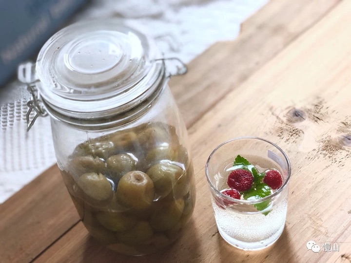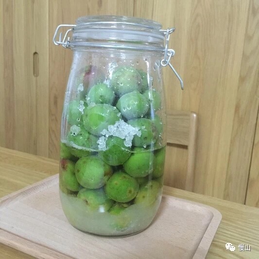 几天后,梅子在糖的催化下渗出了汁,但看起来还是一副青涩样貌。只是那几日千万别忘记每天要开盖子,让里面因发酵而产生的气体排出来,否则,有可能,我是说有可能会发生灾难。