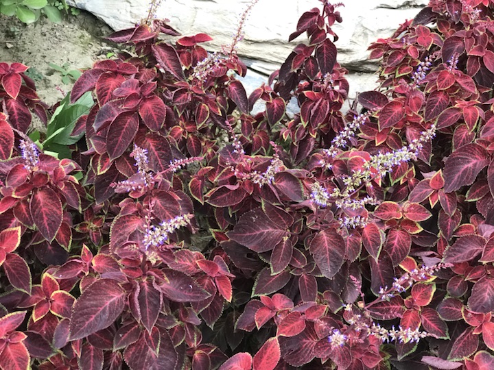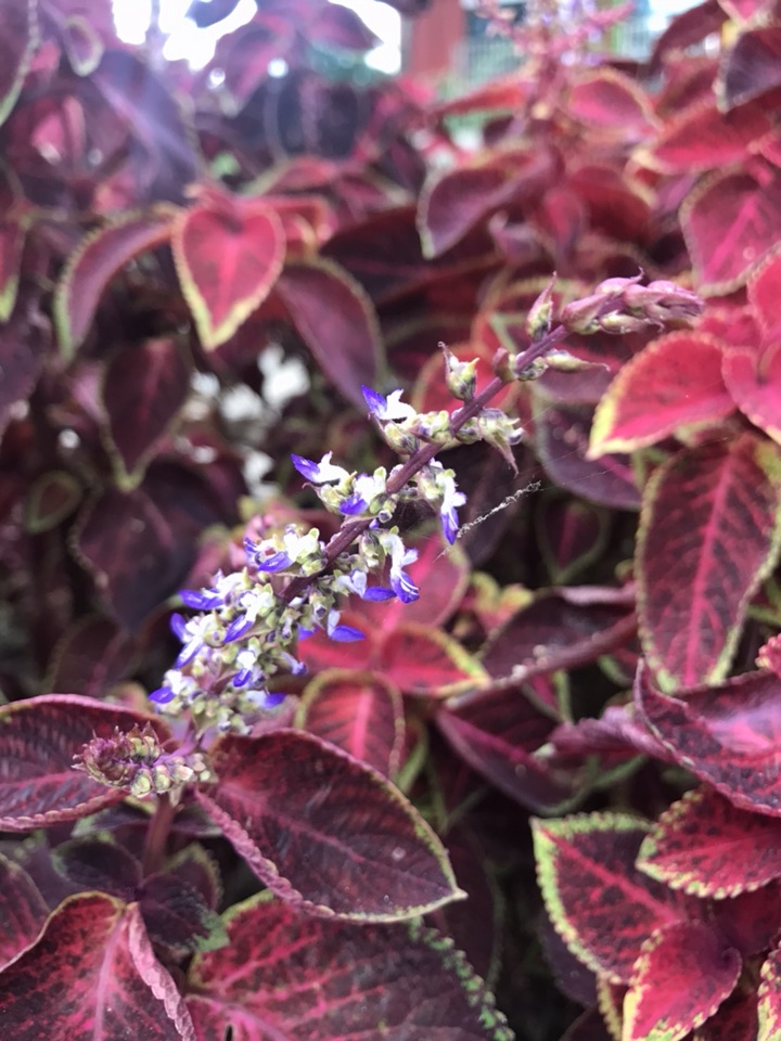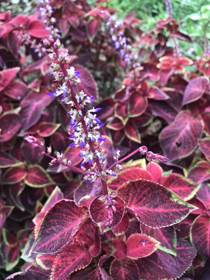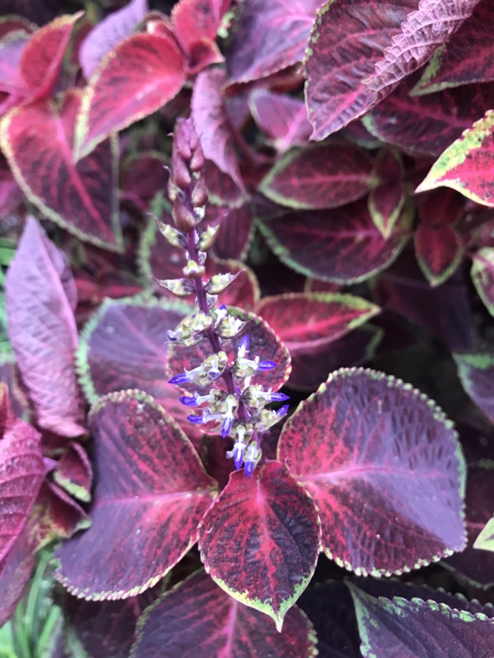五彩苏(学名:Coleus scutellarioides (L.) Benth.)是唇形科,鞘蕊花属直立或上升草本植物,别名五色草、锦紫苏、彩叶草。五彩苏品种繁多,花花绿绿,不同品种叶子颜色和花纹各不相同,所以常用于花坛、会场、剧院布置图案。一年开一次花,花期大约一周,花较小,多为淡蓝色或白色,花期在8到9月份。